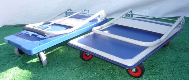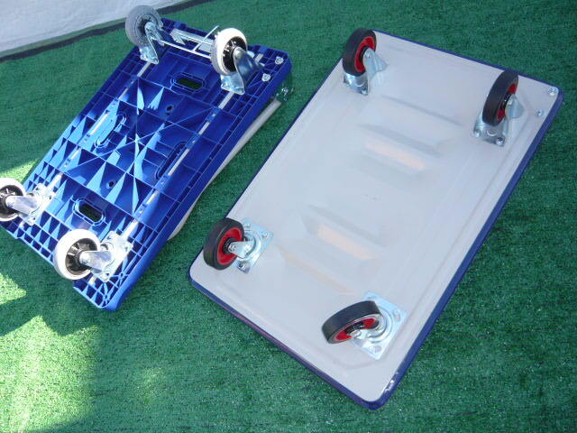 | ◆新品未使用 メッセ展示会展示品格安処分! ブレーキ付・300k台車+ブレーキ無 計2台セット 台車 静音キャスター 樹脂製台車 手押し台車 運搬車 カート ストッパー付 | |