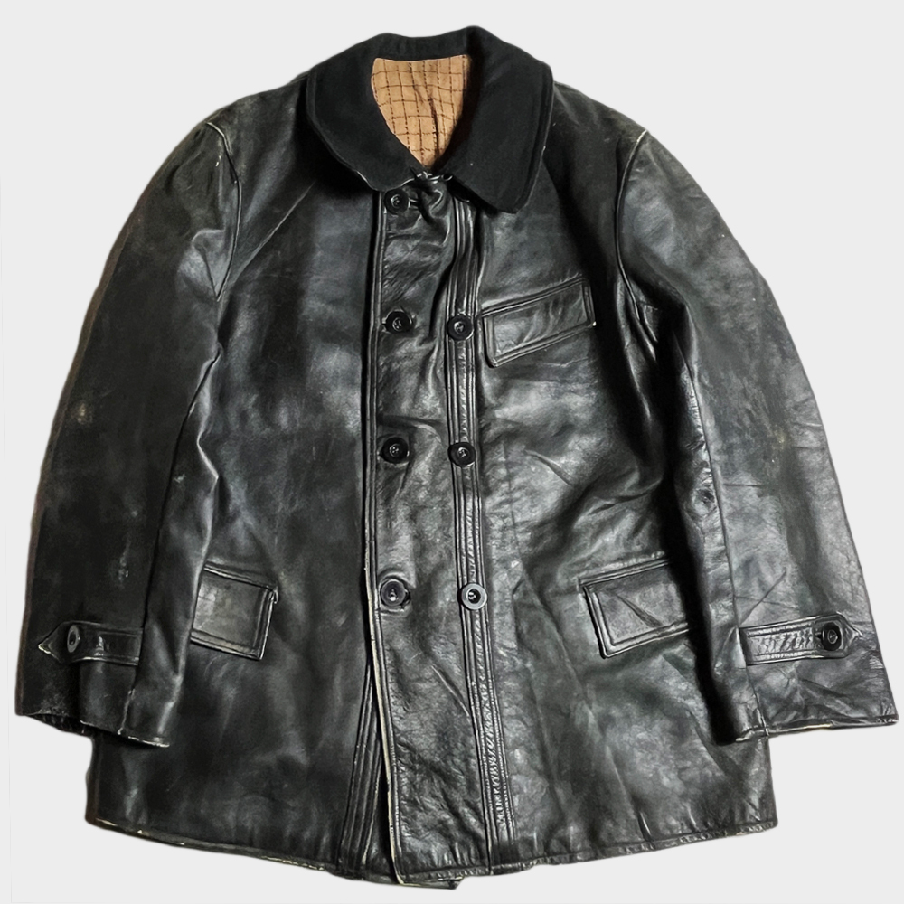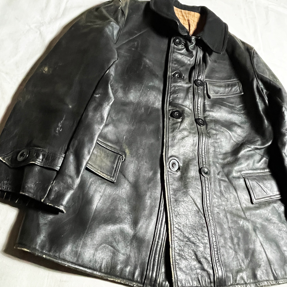 大人気! 40's ウール襟 ル コルビジェ ジャケット フレンチ LE CORBUSIER JACKET WOOL COLLAR レザー LEATHER ダブル フランス FRANCE 着用