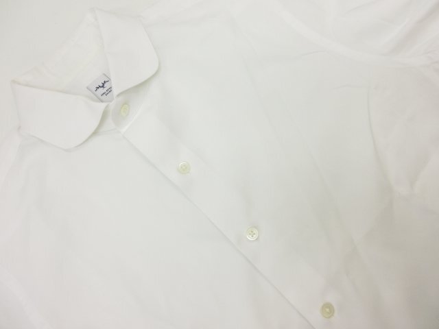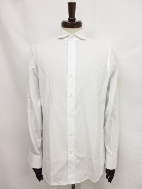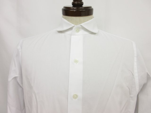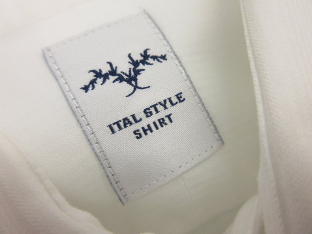 超美品 【イタルスタイル ITAL STYLE】 コットン ラウンドカラー ストライプ織柄 長袖 シャツ (メンズ) size40/88 ホワイト □35MK4314□