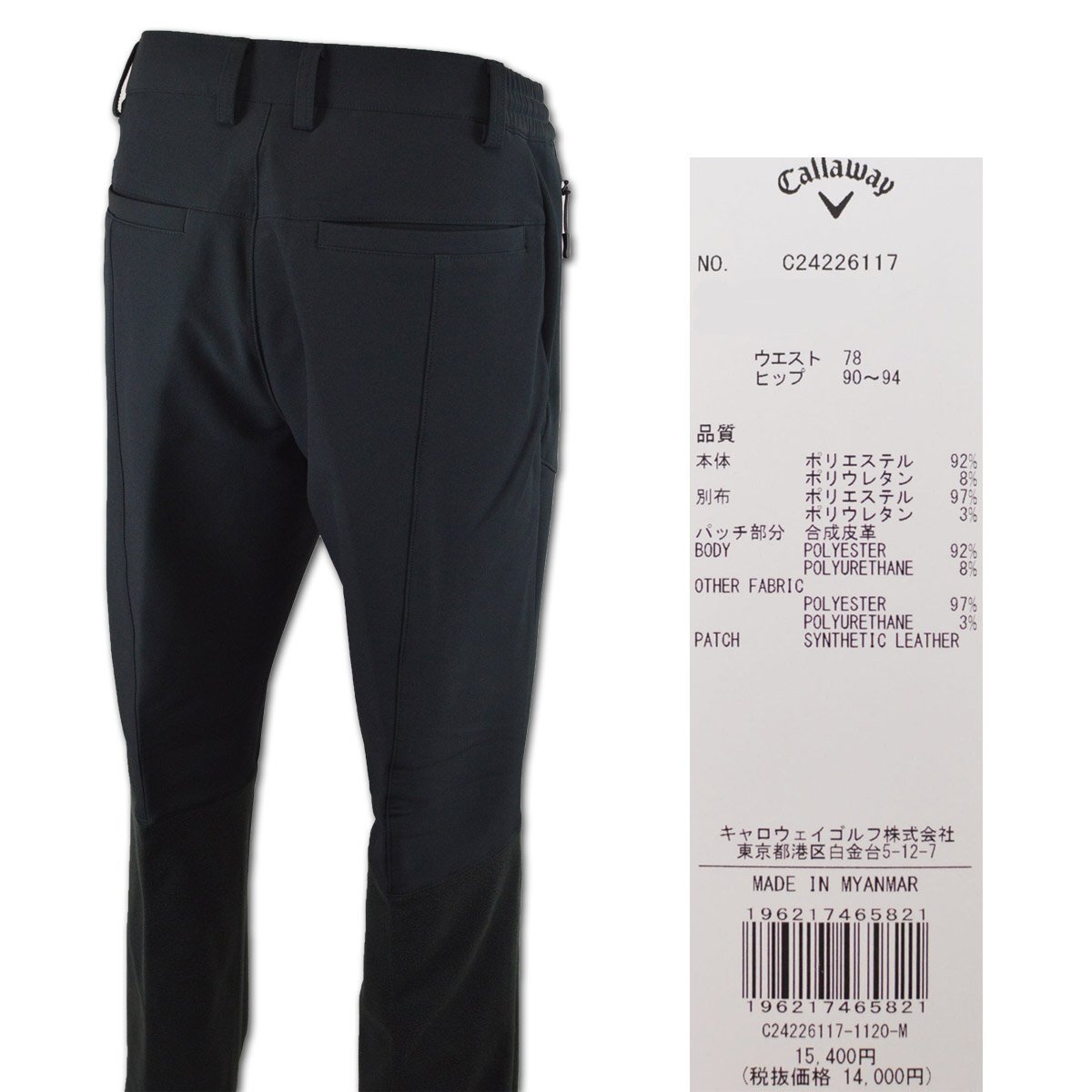 3割引【キャロウェイ】メンズパンツ M 黒 C24226117-1010 Callaway ゴルフ おしゃれ かっこいい 防風 裏起毛 @