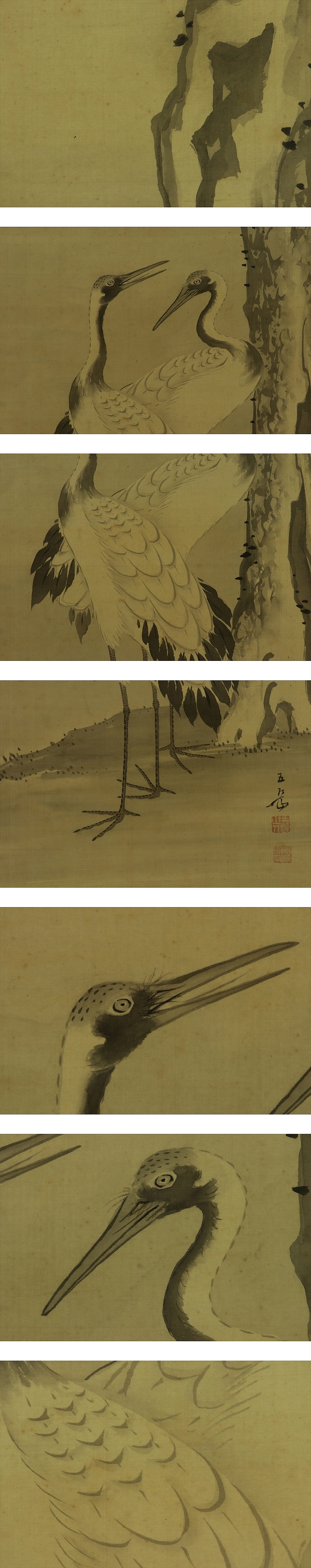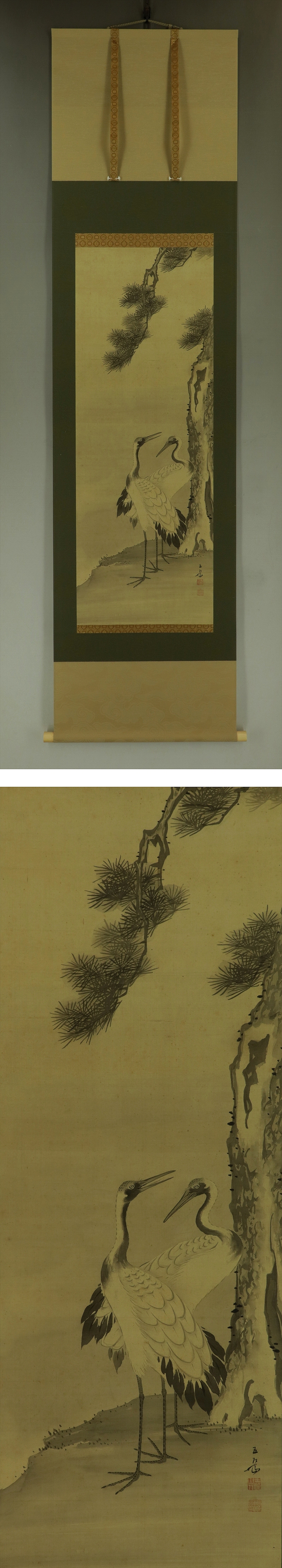 | №2111091a【模写】平野五岳【双鶴】◆絹本◆合箱◆改装済掛軸 | |
