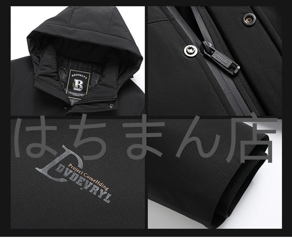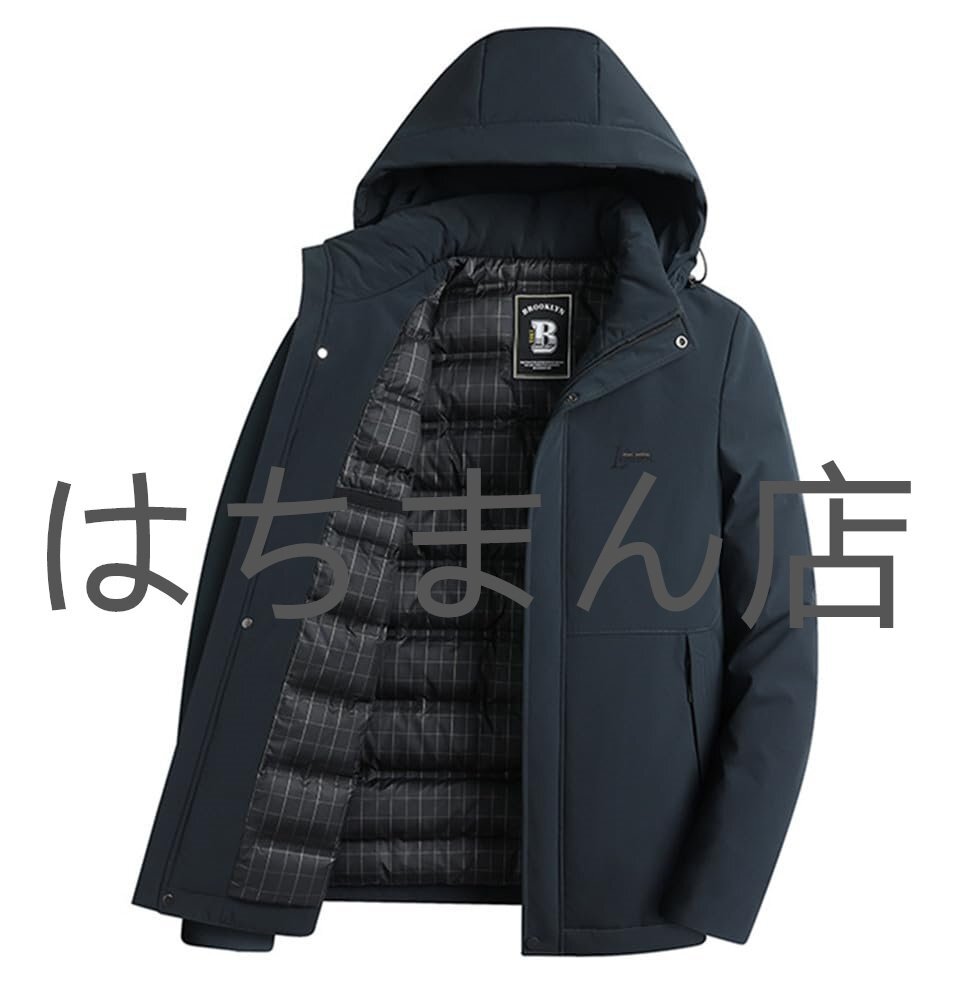 ダウンコート メンズ 中綿入り 中綿コート アウター 厚手 フード付き ビジネス 通勤 紳士服 防寒着 冬物 40代 50代 60代 ネイビー L-4XL