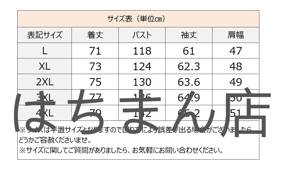 4XL 着丈79cm、バスト134cm、袖丈66.2cm、 肩幅51㎝.店舗をご確認ください:はちまん店、他の同デザインは全て海賊版でございます、品質は保証されていません、慎重に購入してください。