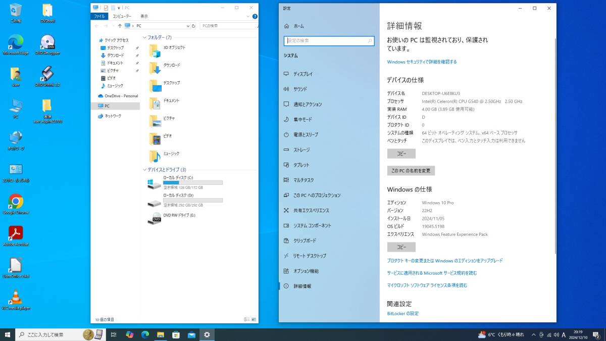 ★Windows10 Pro 64bit がインストールされており、認証済みです。Windows10 のシステム構成やデバイスマネージャーなどは画像のとおりです。
