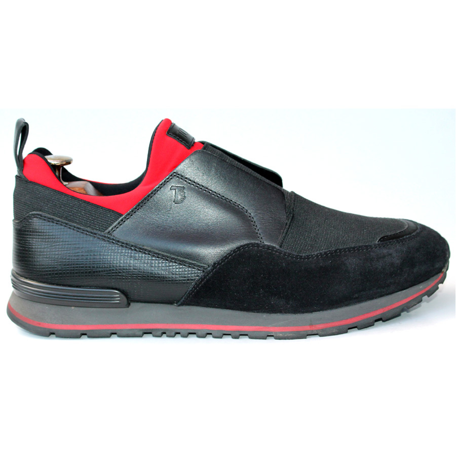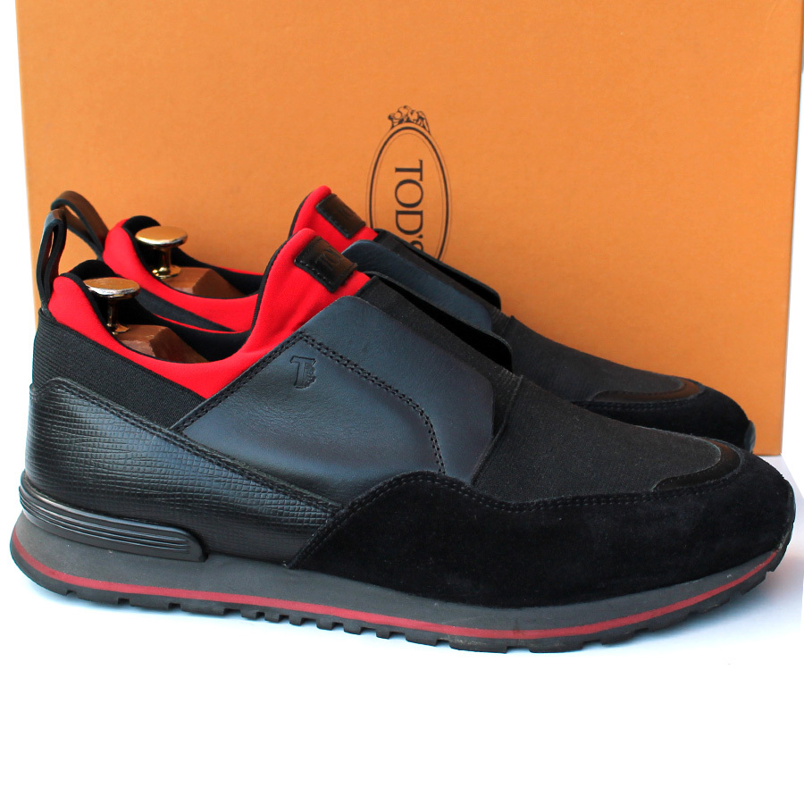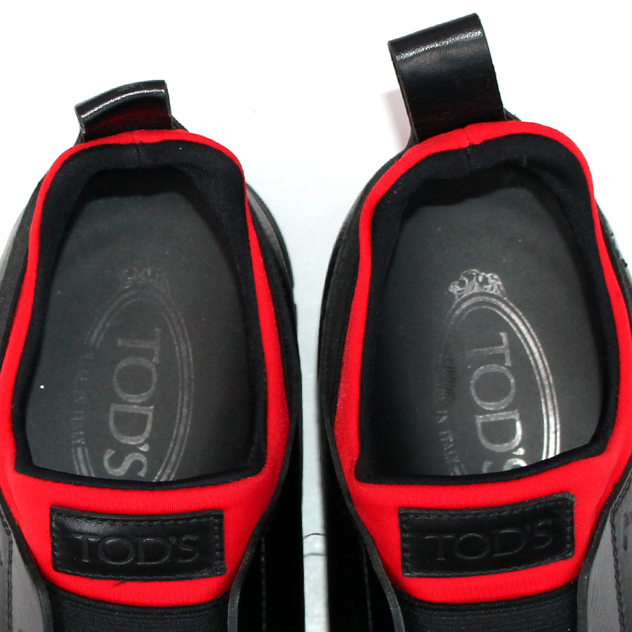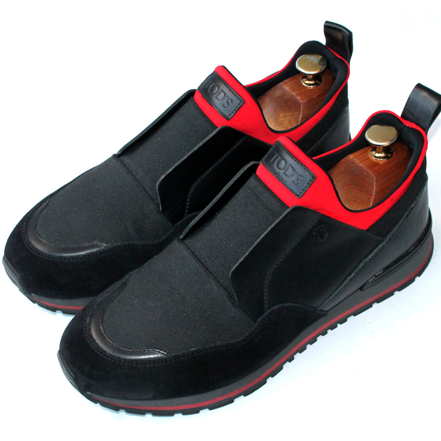 トッズ TOD'S★スリッポン スニーカー 7.5=26.5 ローカット ブラック レッド メンズ イタリア製 i-1149