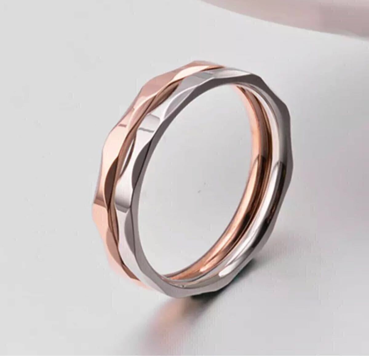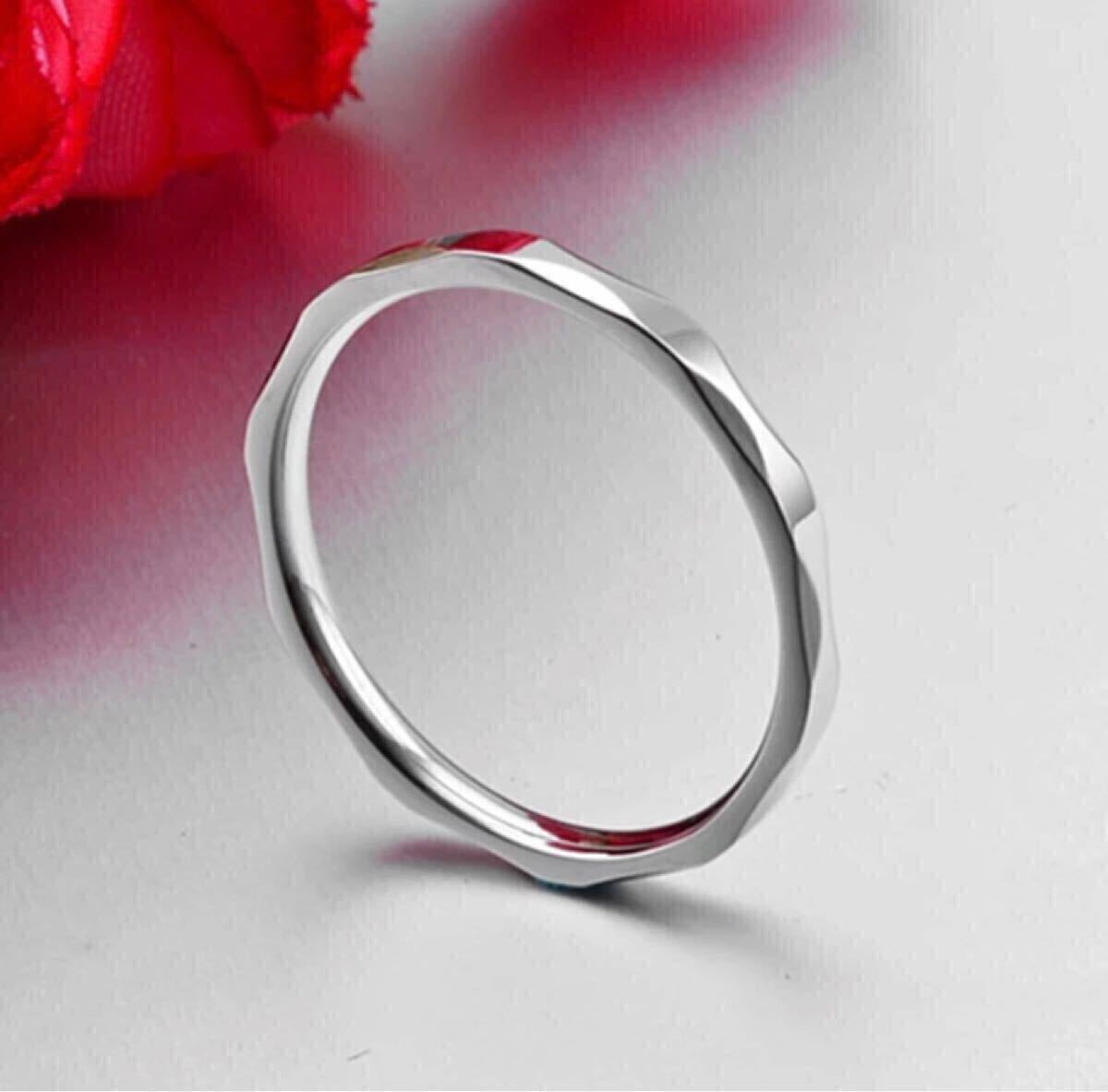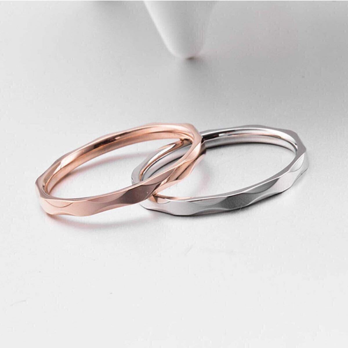 お肌に優しいステンレスにカットデザインを施した、シンプルなユニセックスデザインのリングです。