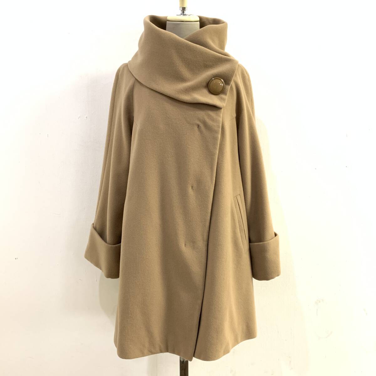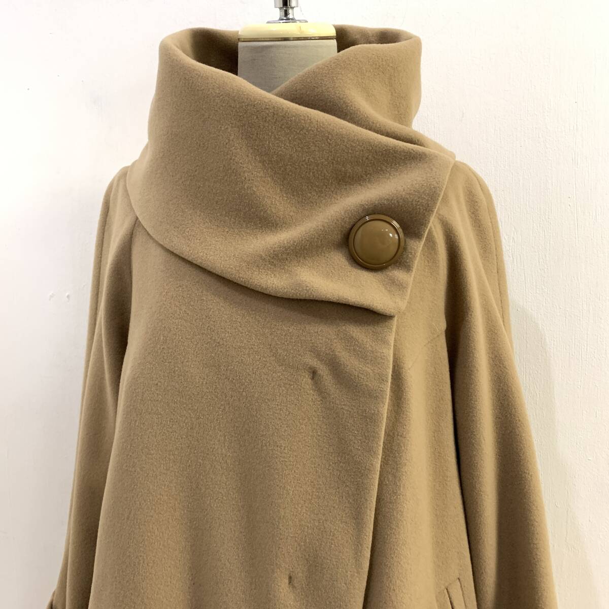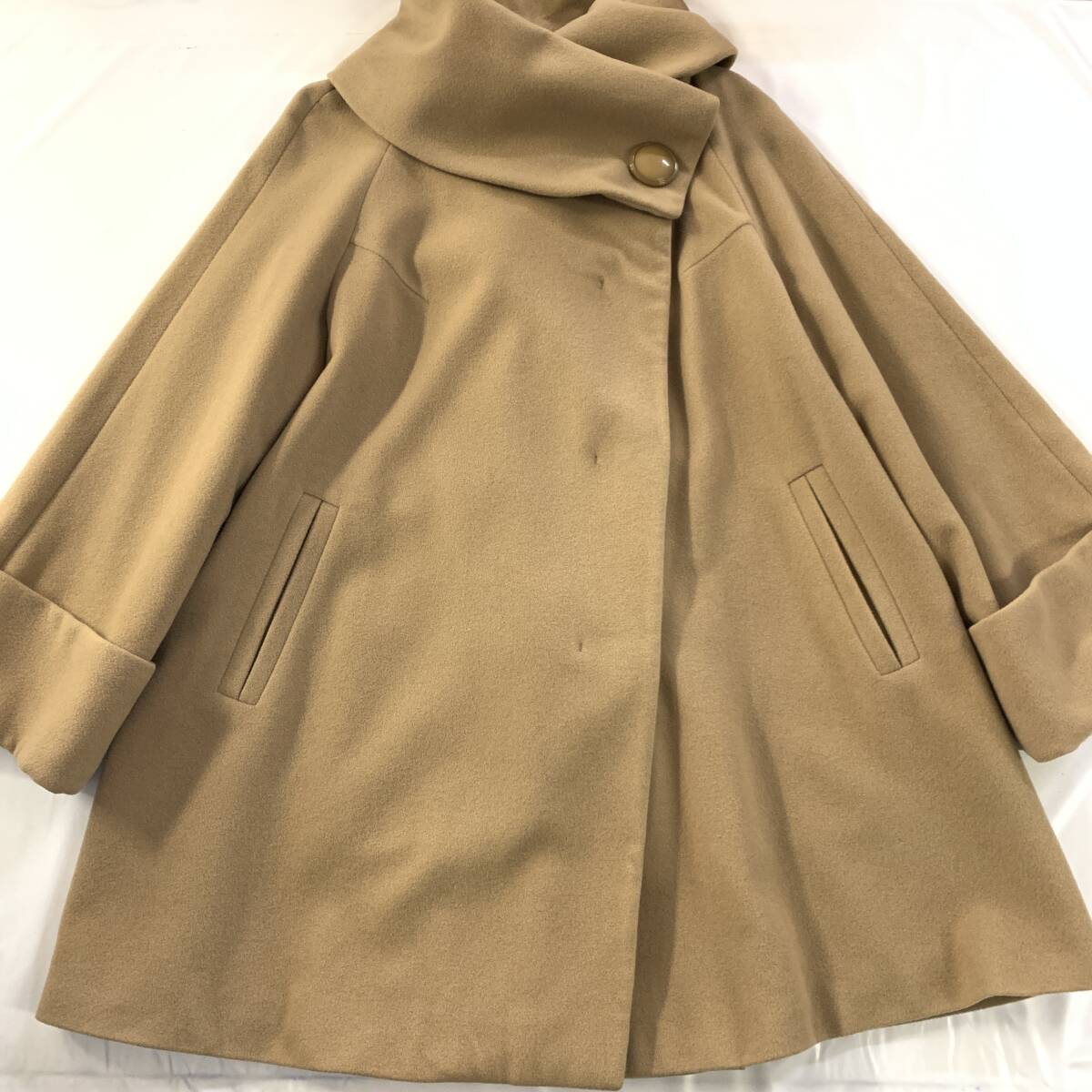 ☆UNTITLED アンタイトル ボリューム衿 ポンチョ風コート 毛100% キャメルベージュ サイズ1 古着【送料一律/同梱可能】Bの出品です。