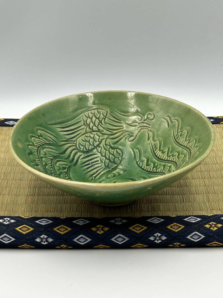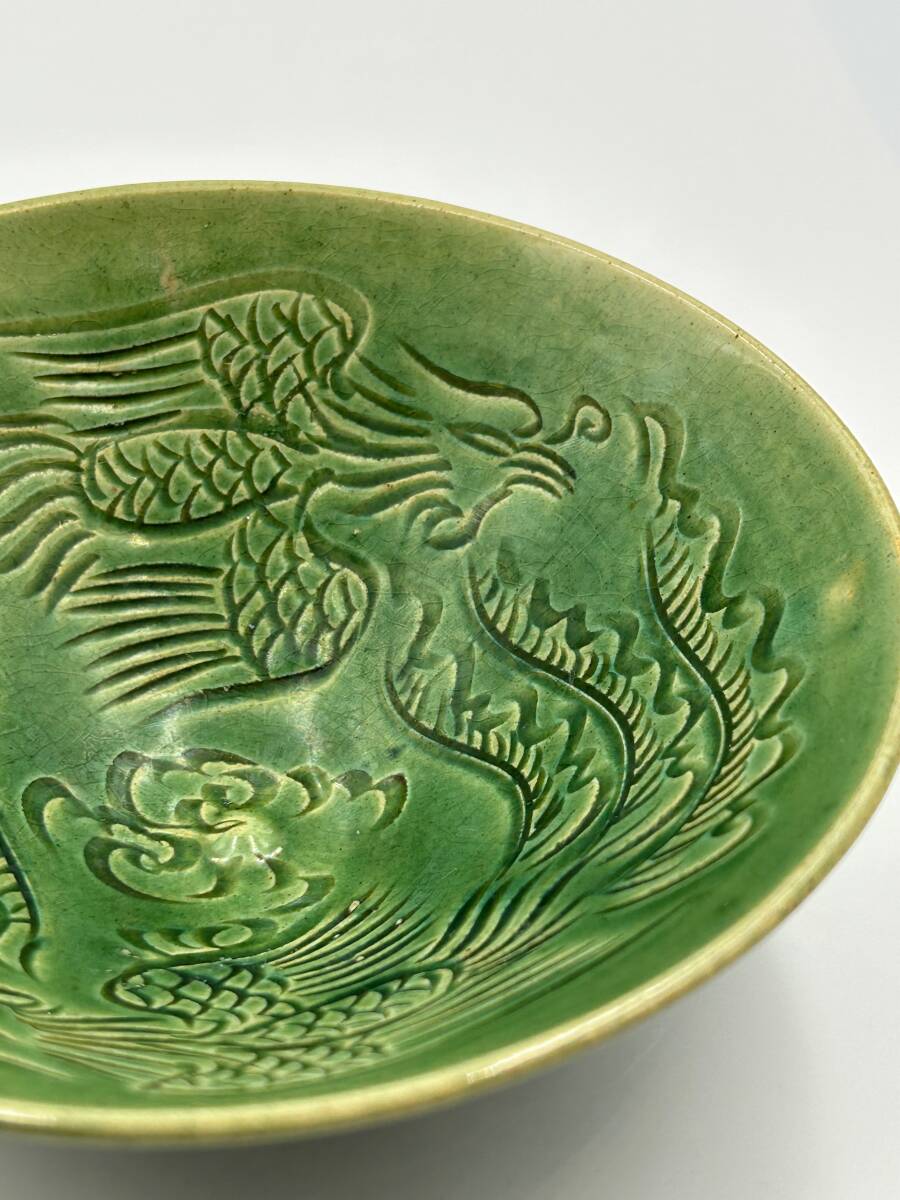 ★0030宋時代 吉州窯  緑釉鳳紋碗 磁器
