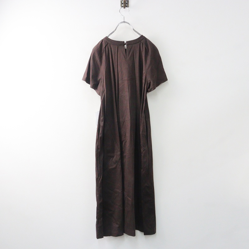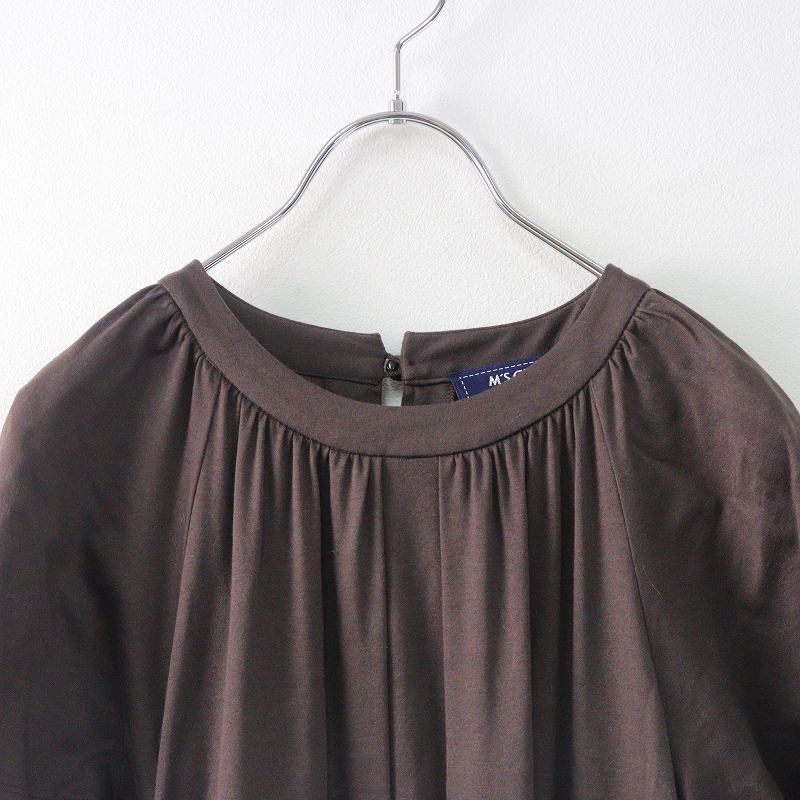 2024年 エムズグレイシー M'S GRACY グログラン コサージュ付 ギャザー 半袖 カットソー ワンピース 38/濃ブラウン【2400014137392】