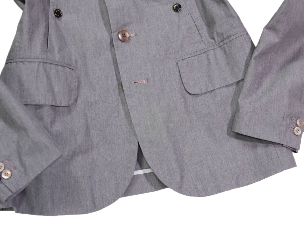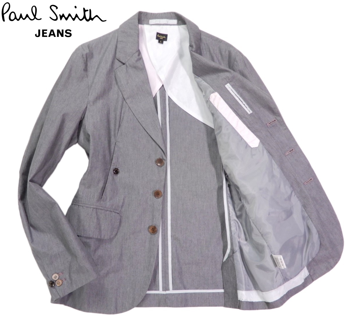 ポールスミスジーンズ ジャケット サイズ表記:L お色:グレー 素材:表地 コットン100% 裏地 ポリエステル 平置き実寸で 肩幅43 身幅51 着丈71 袖丈65㎝位です。 本切羽、背抜き、サイドベンツ。 ご家庭でのお洗濯可能! |