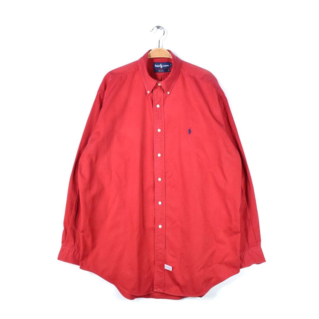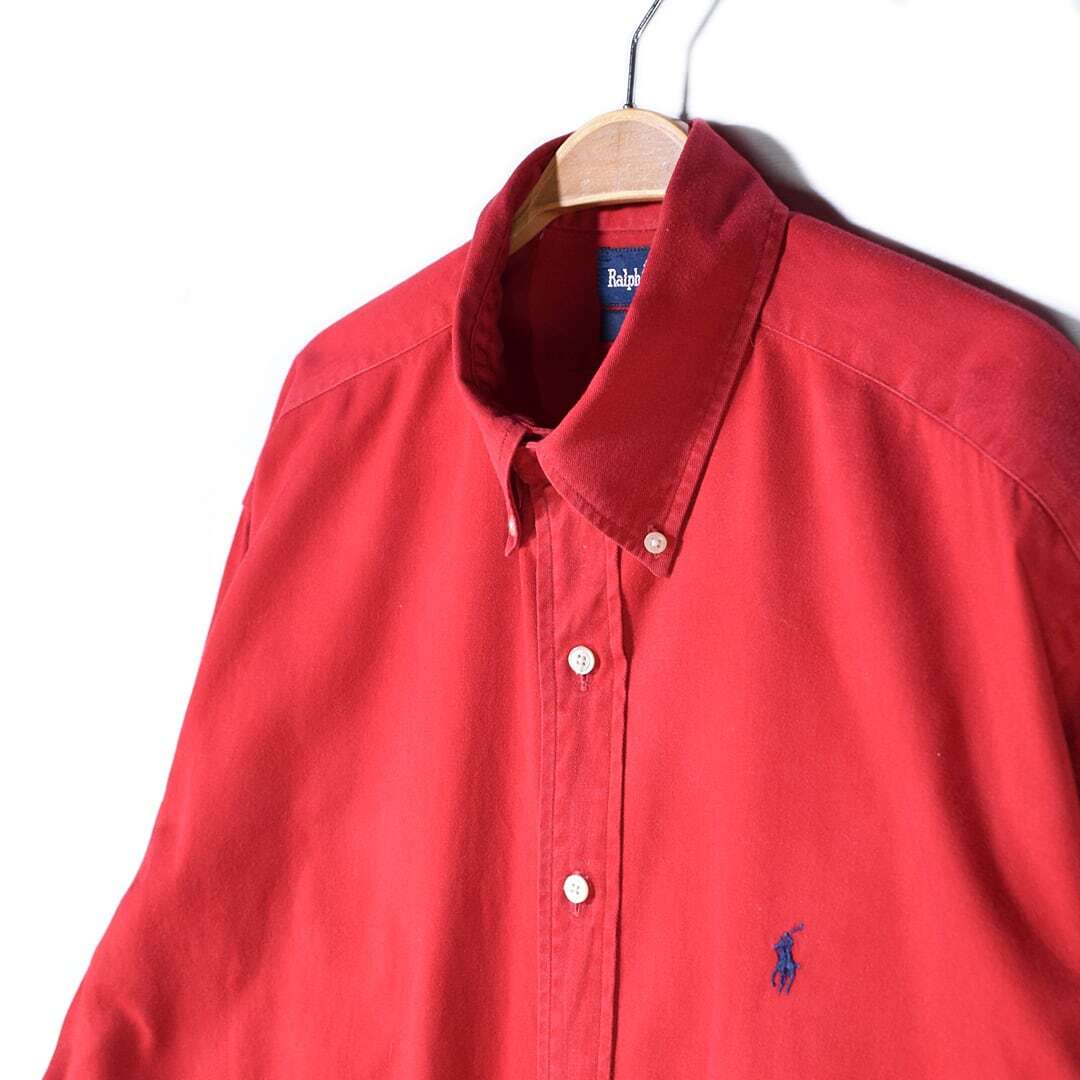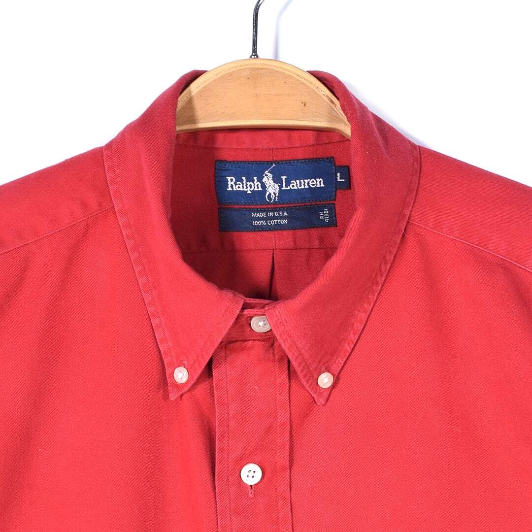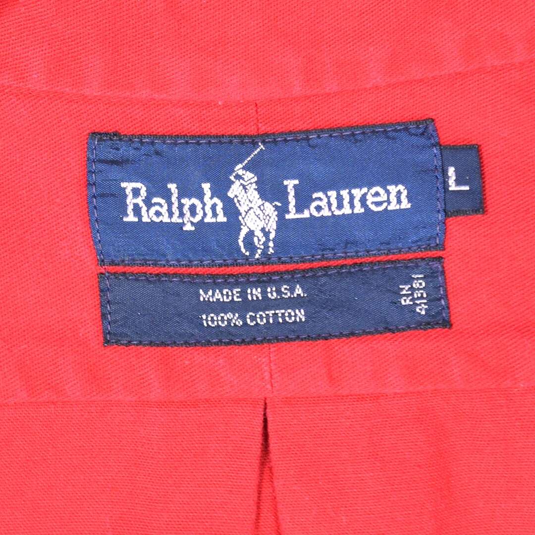 80s ラルフローレン USA製 オックスフォードシャツ ボタンダウン レッド RALPH LAUREN メンズL 古着 @CA1405