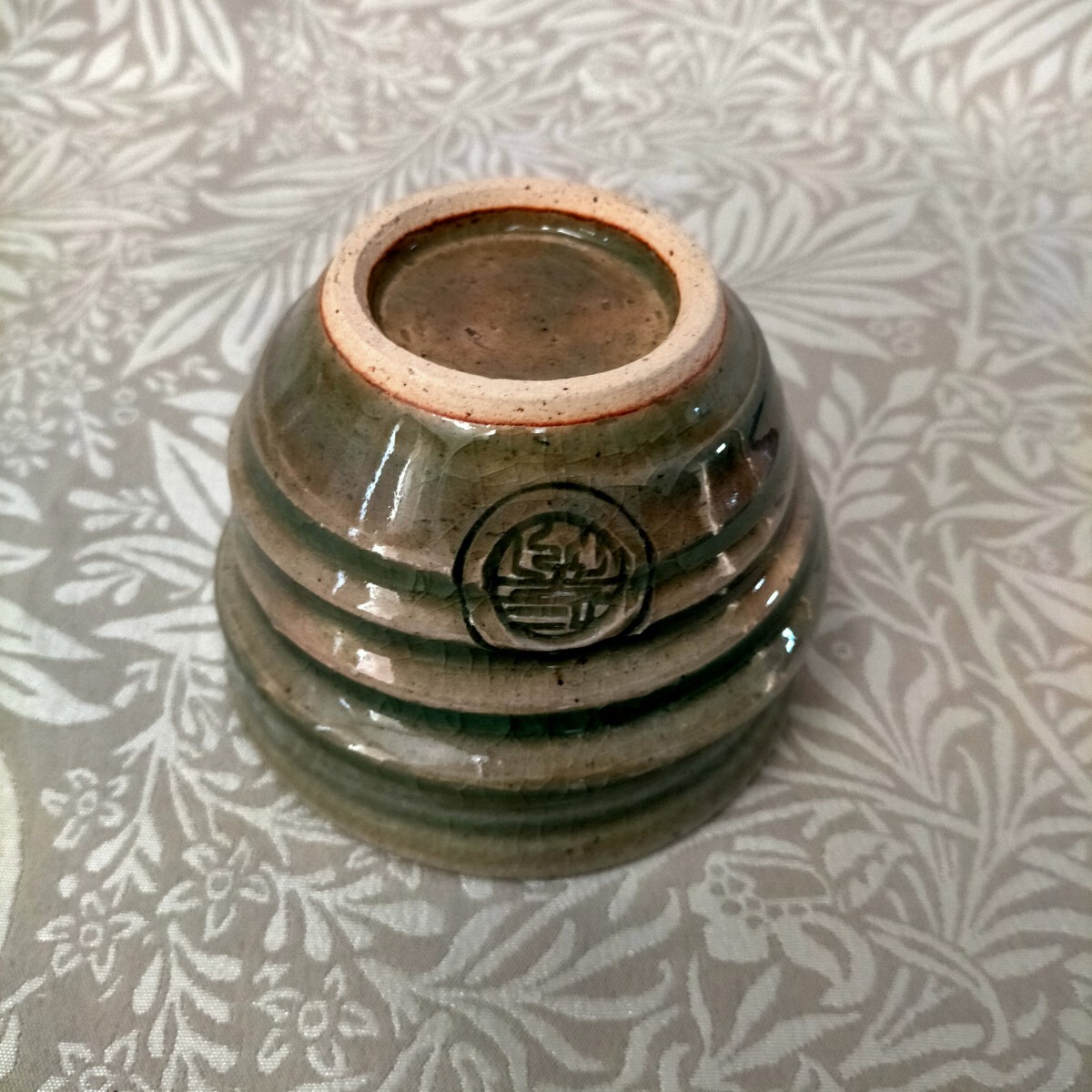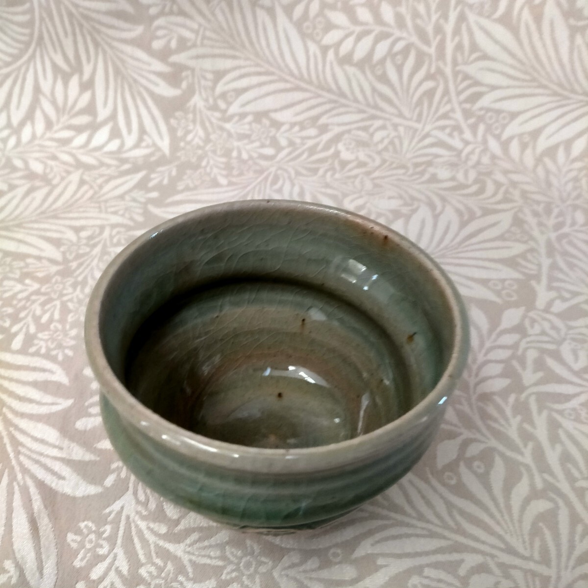 未使用保管品  仁和寺御用達仁秀窯  青磁色に貫入 ろくろ回しのフリーカップ  青磁色2個セット