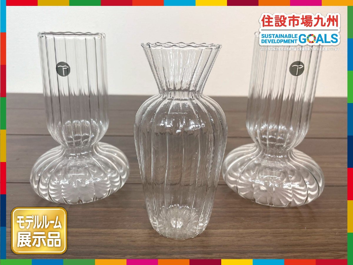 【福岡】インテリア雑貨 花瓶 3個セット◆フラワーベース◆大W95 H160◆小W80 H155◆モデルR展示品◆BR6766_Ts