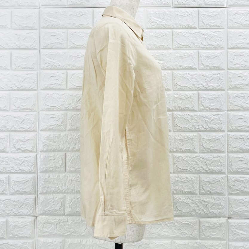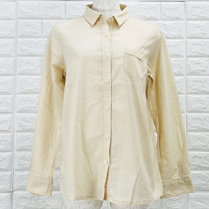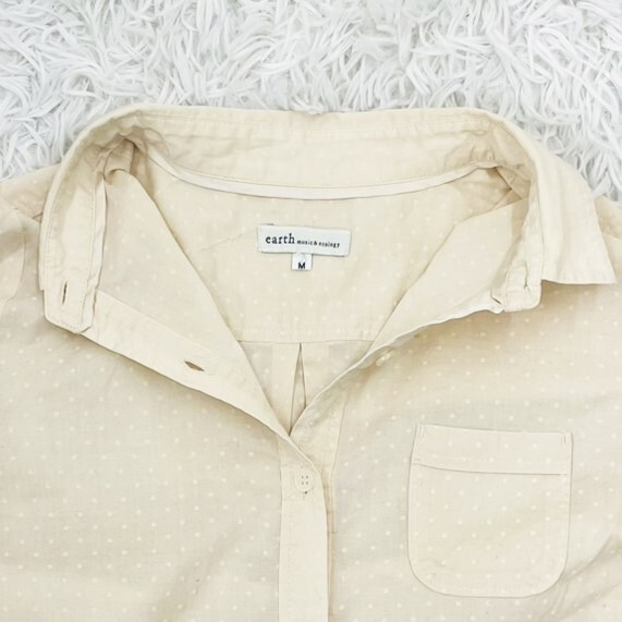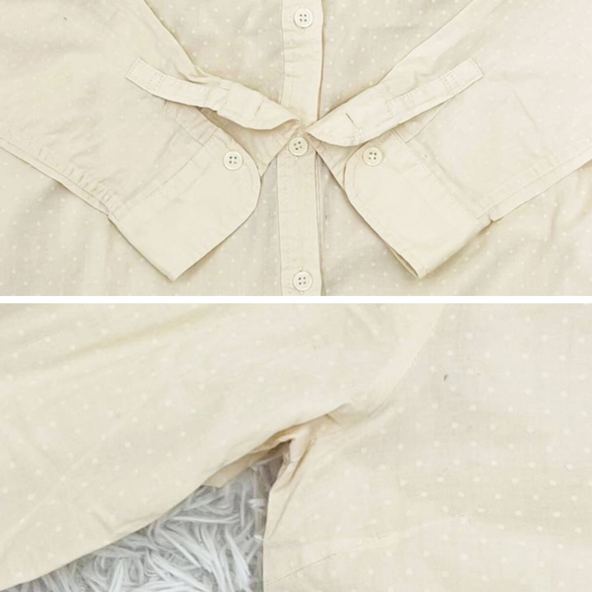 【A2451】earth music&ecology アースミュージック&エコロジー ブラウス ベージュ ドット シンプル カジュアル 長袖シャツ Mサイズ