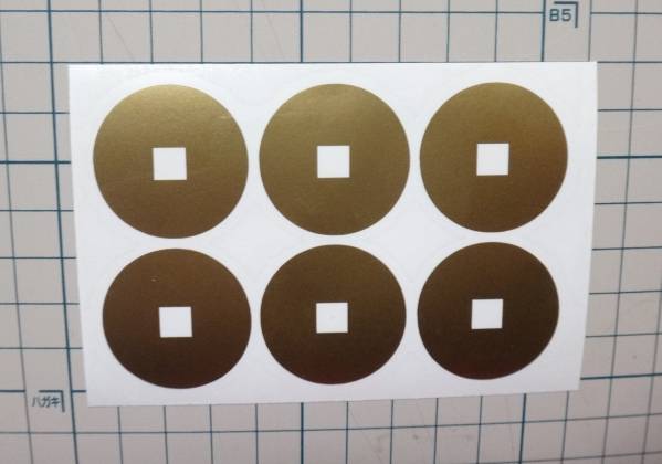 戦国武将、真田家の家紋(旗印)をカッティングステッカーにしました。 有名な六文銭です。 裏の台紙を剥して貼り付けると色の付いたステッカー部分のみが残ります。 素材となるステッカー素材は日本で製造されるものの中で最も耐久性の高いものを採用しましたので屋外はもちろん、水中(船など)でも使用可能です。 色は出品のものの他、ホワイト、ブラック、レッド、イエロー、ゴールド、シルバー、グリーン、イエロー、オレンジ、ブルーグリーン、スカイブルー、パープル、他いろいろ対応可能です。 標準サイズは8.0cm×12.0cmとなりますが、ご要望に合わせてサイズ変更も可能です。 送料は普通郵便で110円~140円になります。 |