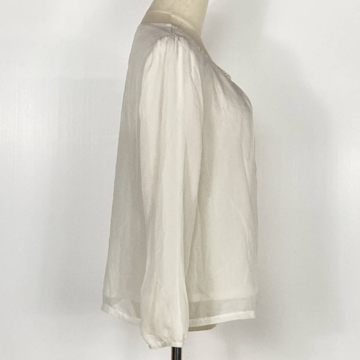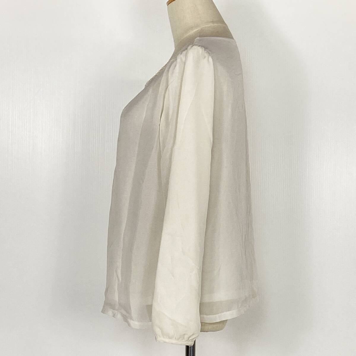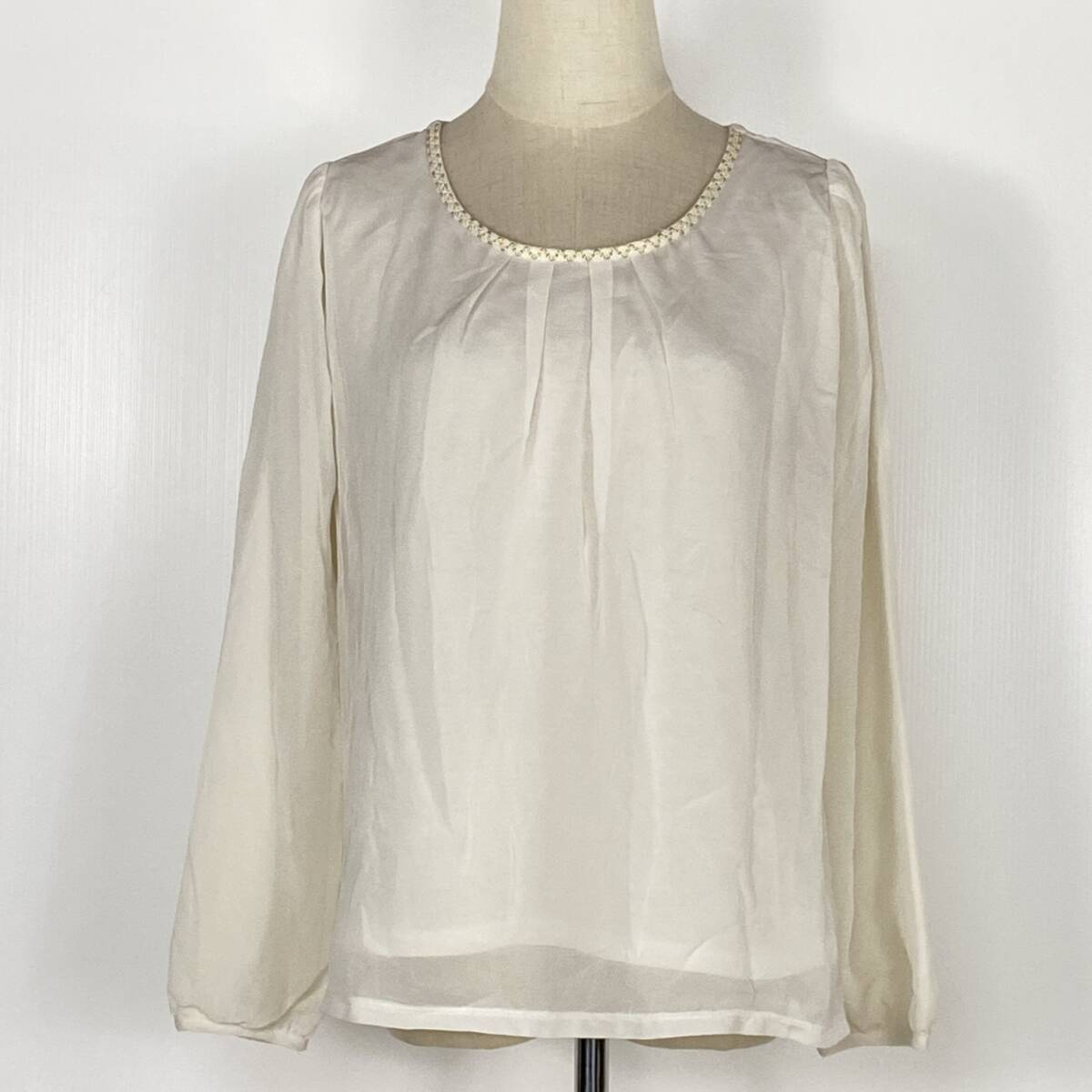 YZ1507 極美品 grove グローブ レディース 長袖 ブラウス トップス ホワイト 白 Mサイズ シャーリング 万能 オフィススタイル 美しい USED