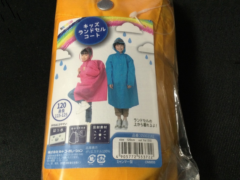 ◎ サイズ ・子供用 120㎝(115~125) (パッケージより) ◎ カラー ・ 黄色 ・(写真で判断して下さい) ※写真の写りの関係で、自分の思ったカラーと違うと言う方がいます。 ご理解頂き入札頂くか、不明確な場合は質問欄よりカラー確認を必ずして下さい。 ◎ 状態 ・未使用です。 ・ランドセルの上から着れます。 ・はっ水、背中マチ付き、反射素材。 状態ですが個人差がありますので、あまり神経質な方は入札をお控え下さい。 商品について不明な点が有る場合は必ず入札前に質問をして下さい。 ノークレーム、ノーリターンで御願いします。 |
