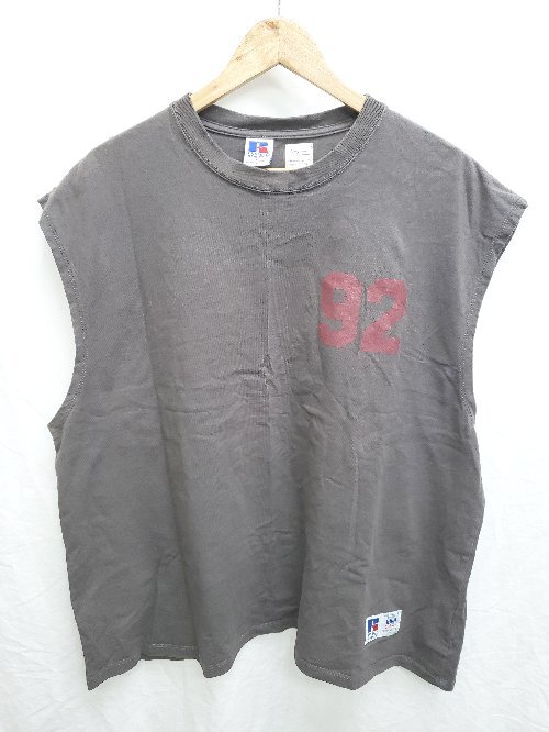 ◇ Θ Φ Russell Athletic × Ungrid コットン100% ノースリーブ カットソー サイズF チャコールグレー メンズ P