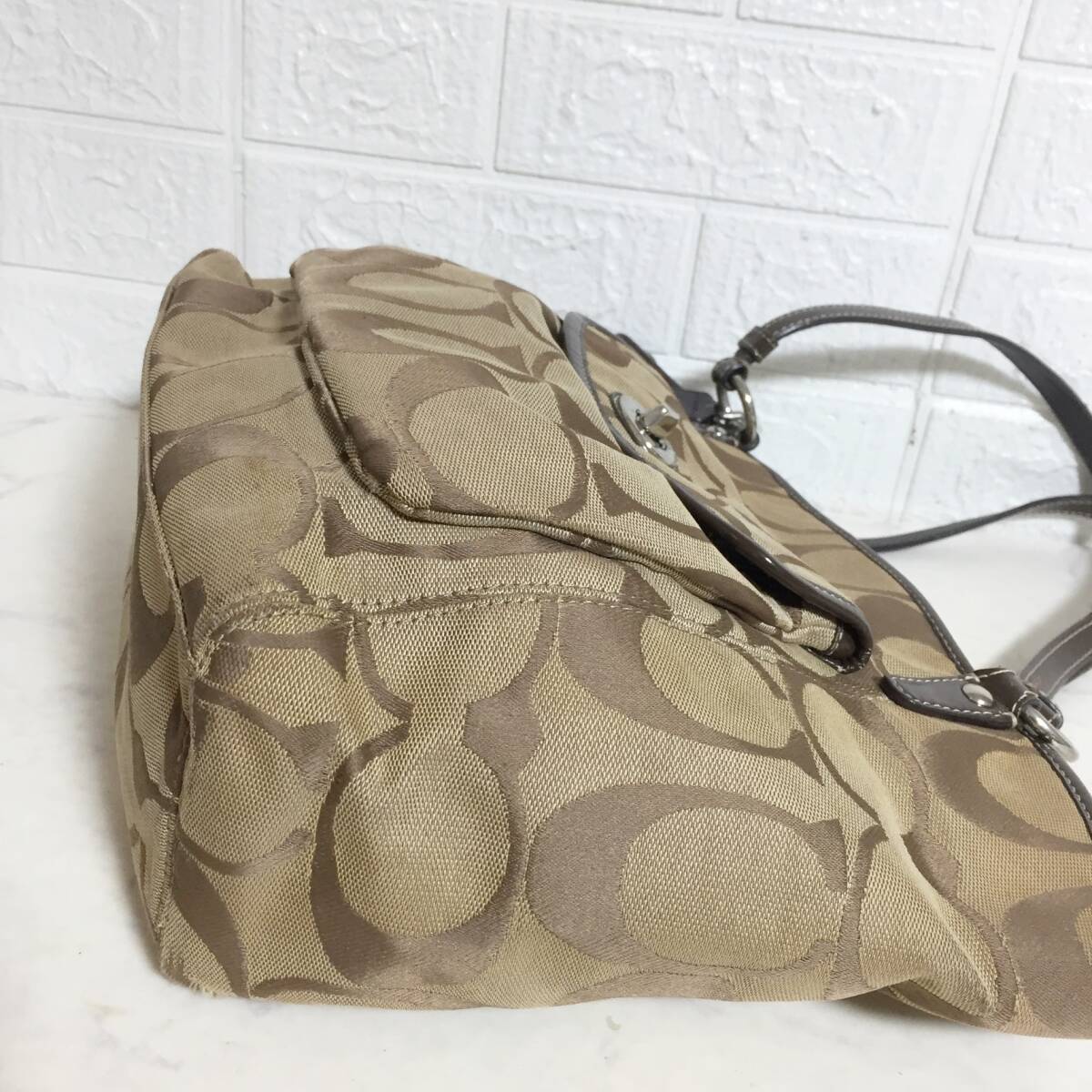 no29705 COACH コーチ F14659 レザー キャンバス シグネチャー 肩掛けショルダー トート バッグ 通勤 通学 A4収納可能