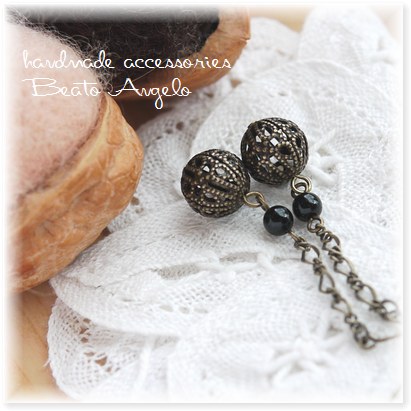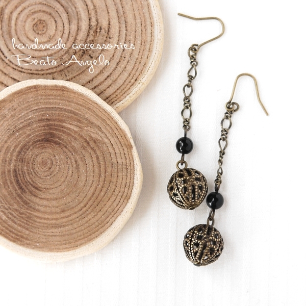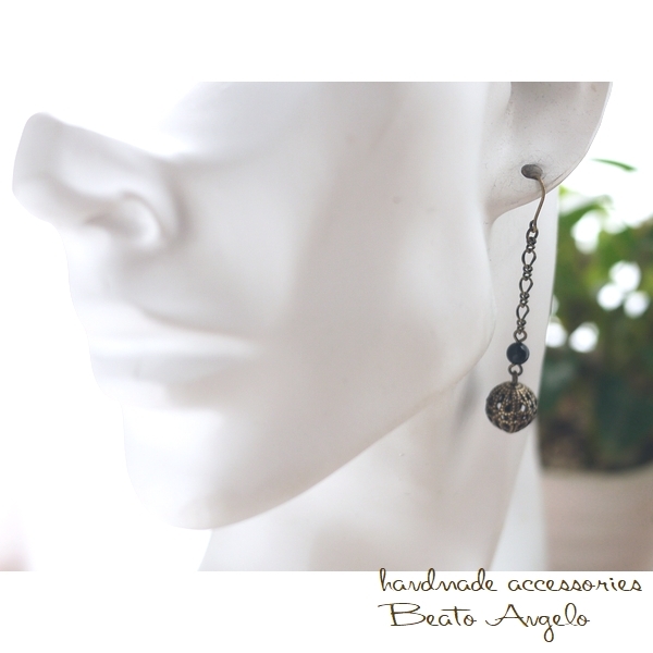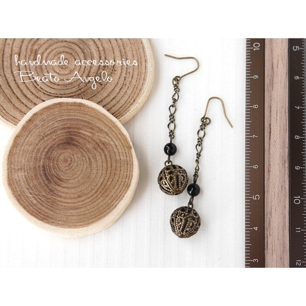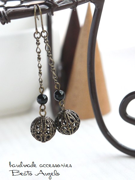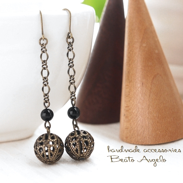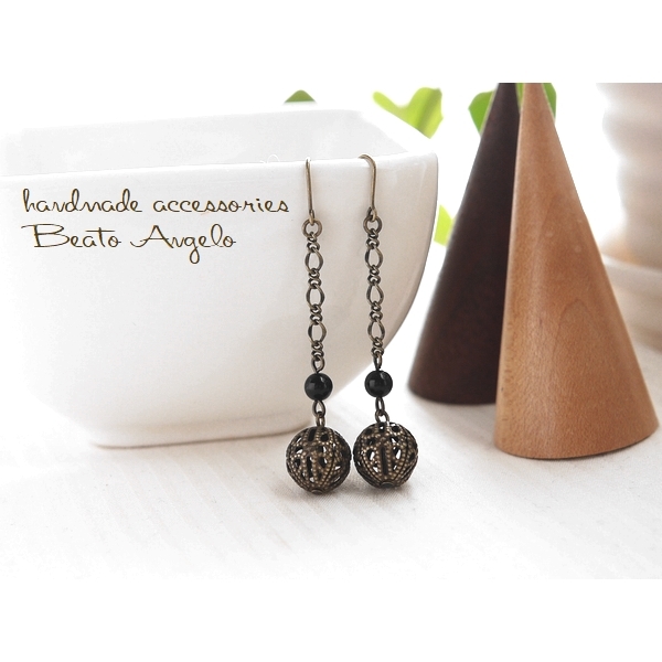 ◇◇k+angelo+透かし玉とオニキスのチェーンピアス(p-017)AG 天然石 金古美 チタン 樹脂 イヤリング ※在庫限り