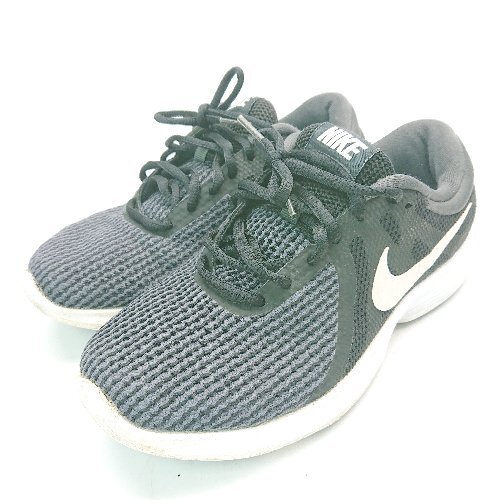 ◇ NIKE ナイキ ウィレボリューション 908999 ブランドロゴ 軽量 ランニングシューズ サイズ23.5 ブラック レディース E