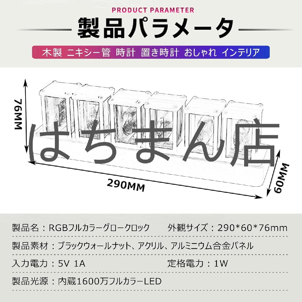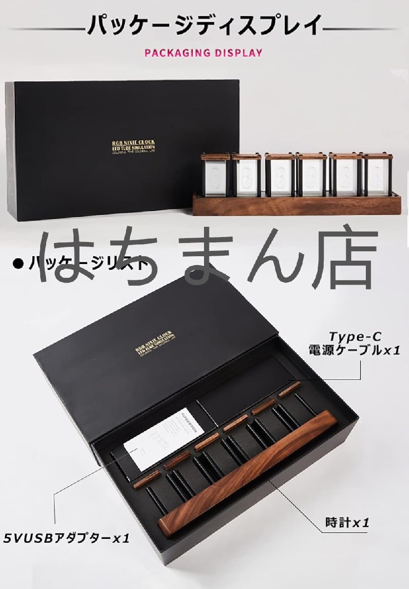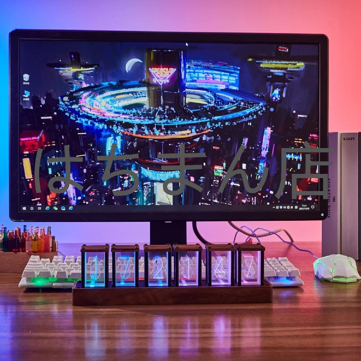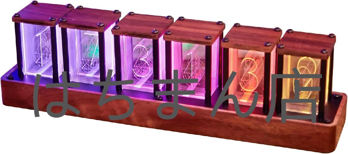 ニキシー管 時計 デジタル時計 木製 置き時計 シミュレーション グローチューブクロック 1600万色 RGBフルカラー LED-4-完成品
