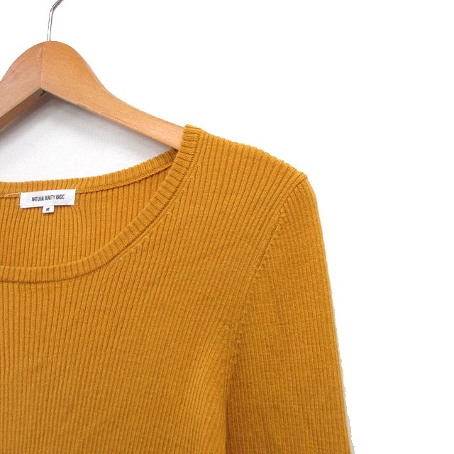 ナチュラルビューティーベーシック NATURAL BEAUTY BASIC リブ ニット セーター 長袖 ウール シンプル M マスタード /KT10 レディース