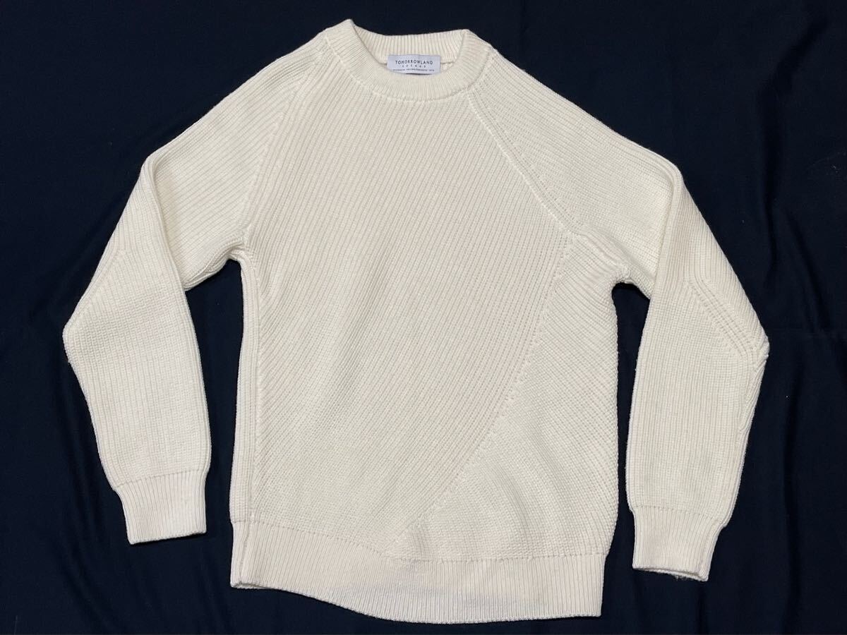 未使用 TOMORROWLAND tricot ウール ニット セーター  トゥモローランド トリコット クルーネック オフホワイト ハイデザイン YL744