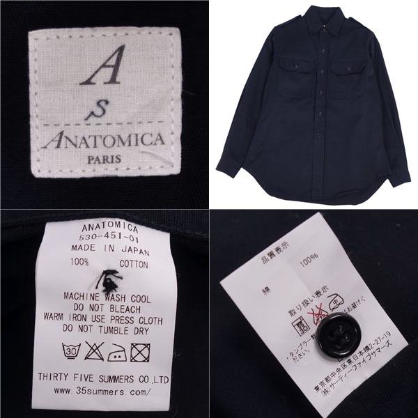 | 美品 アナトミカ ANATOMICA ジャケット シャツジャケット ミリタリージャケット コットン 無地 アウター メンズ S |