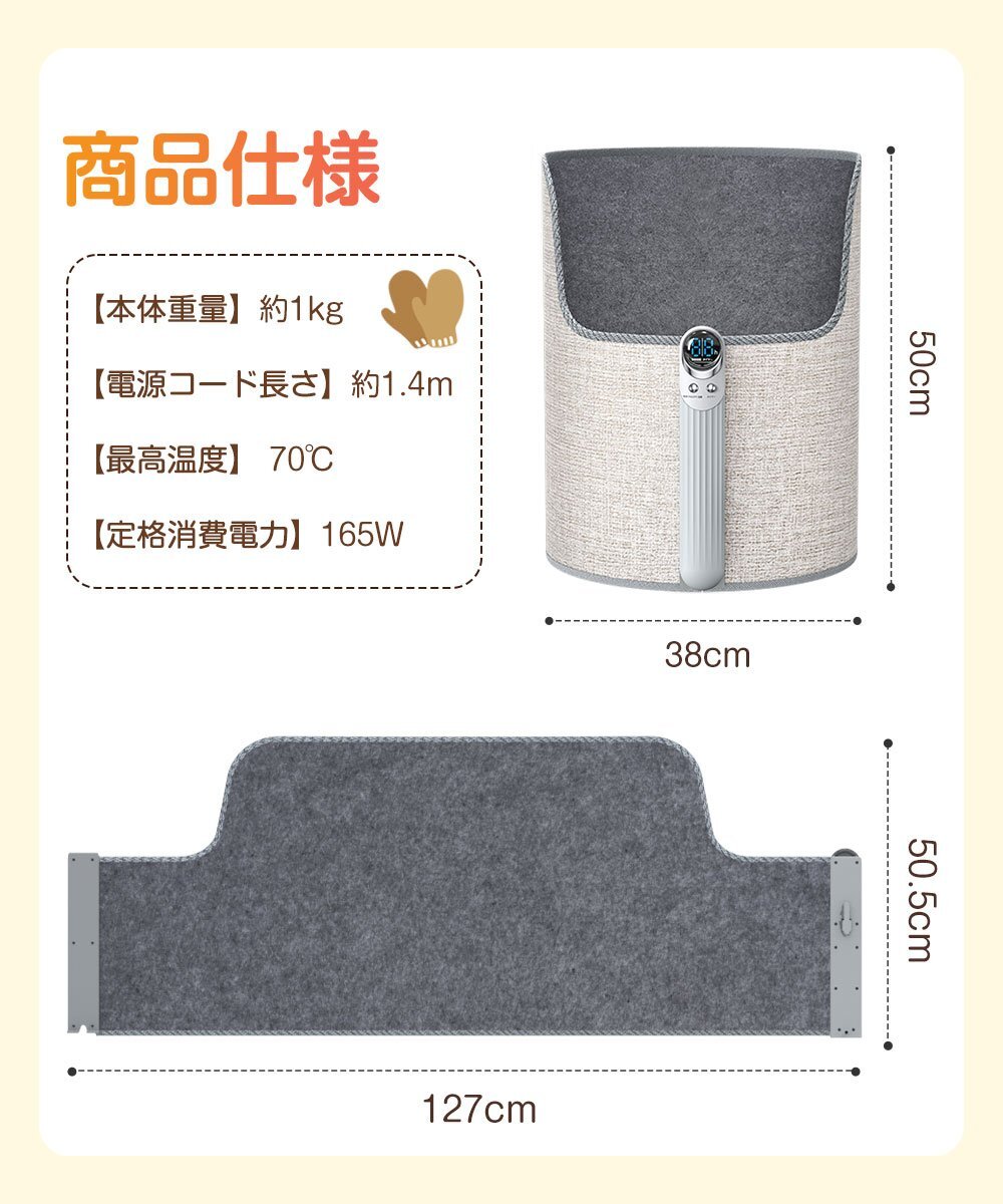 炭素繊維発熱を採用されて循環加熱、足の全方位発熱!45±5℃、50±5℃、55±5℃、60±5℃、65±5℃の5段階に温度調節できるため、室温に合わせて好みの温度で使用できます。