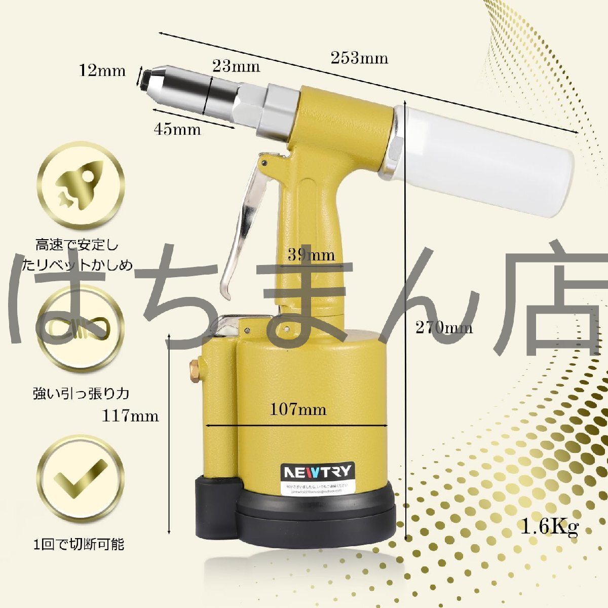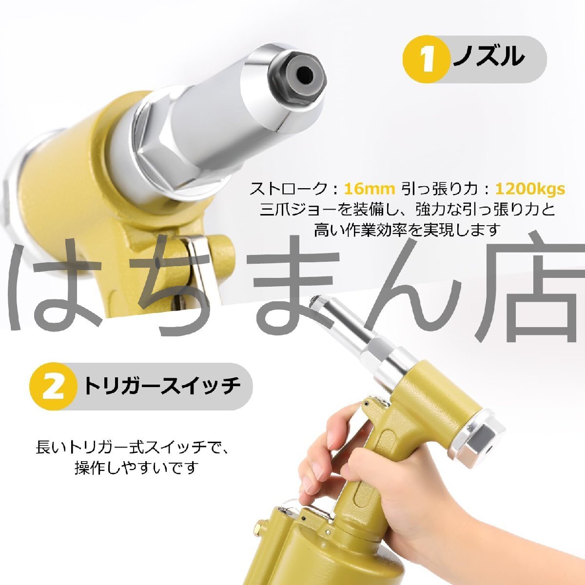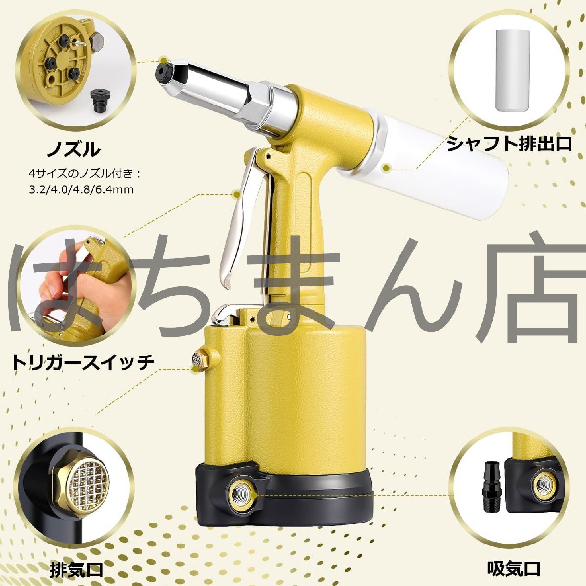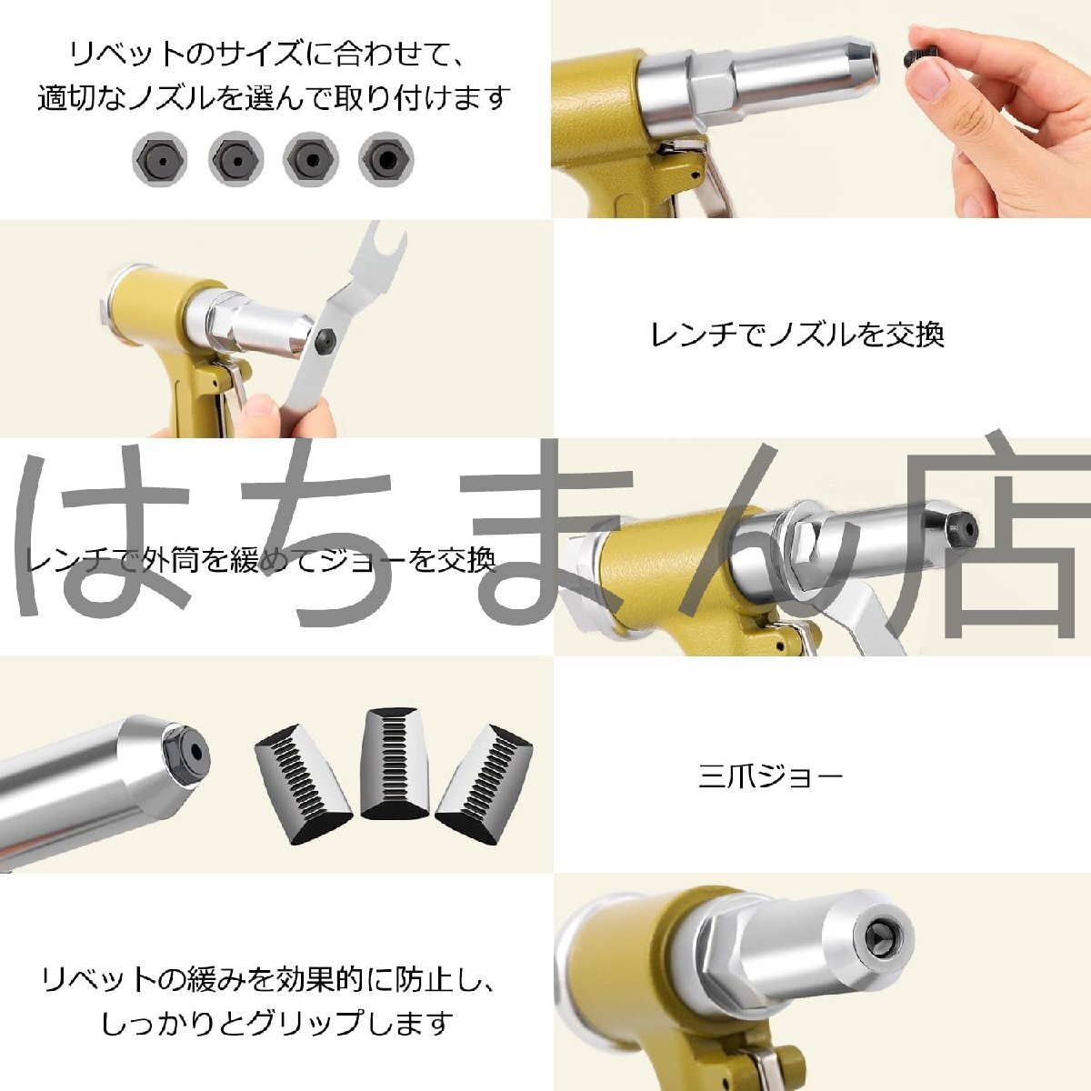 エアーリベッター ハンドリベッター 大量打ち エアー工具 ノズル 3.2/4.0/4.8/6.4mm 三爪タイプジョー レンチ付き