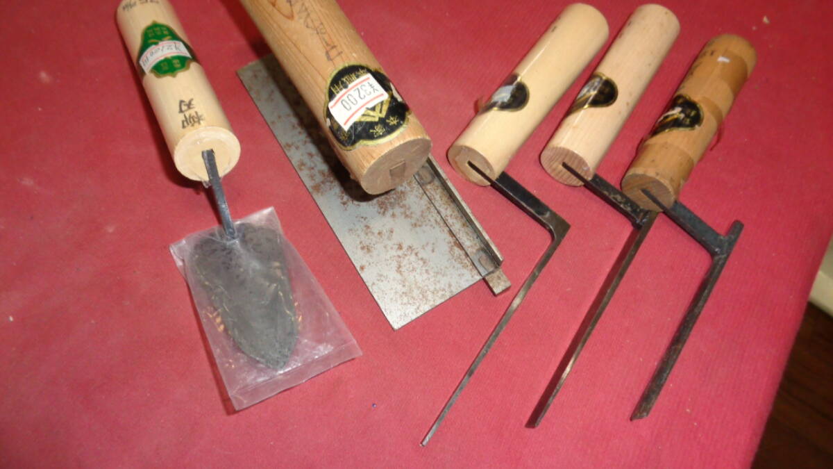 半端処分の鏝たち (コーキング+目地鏝+柳刃) 計5点 G67