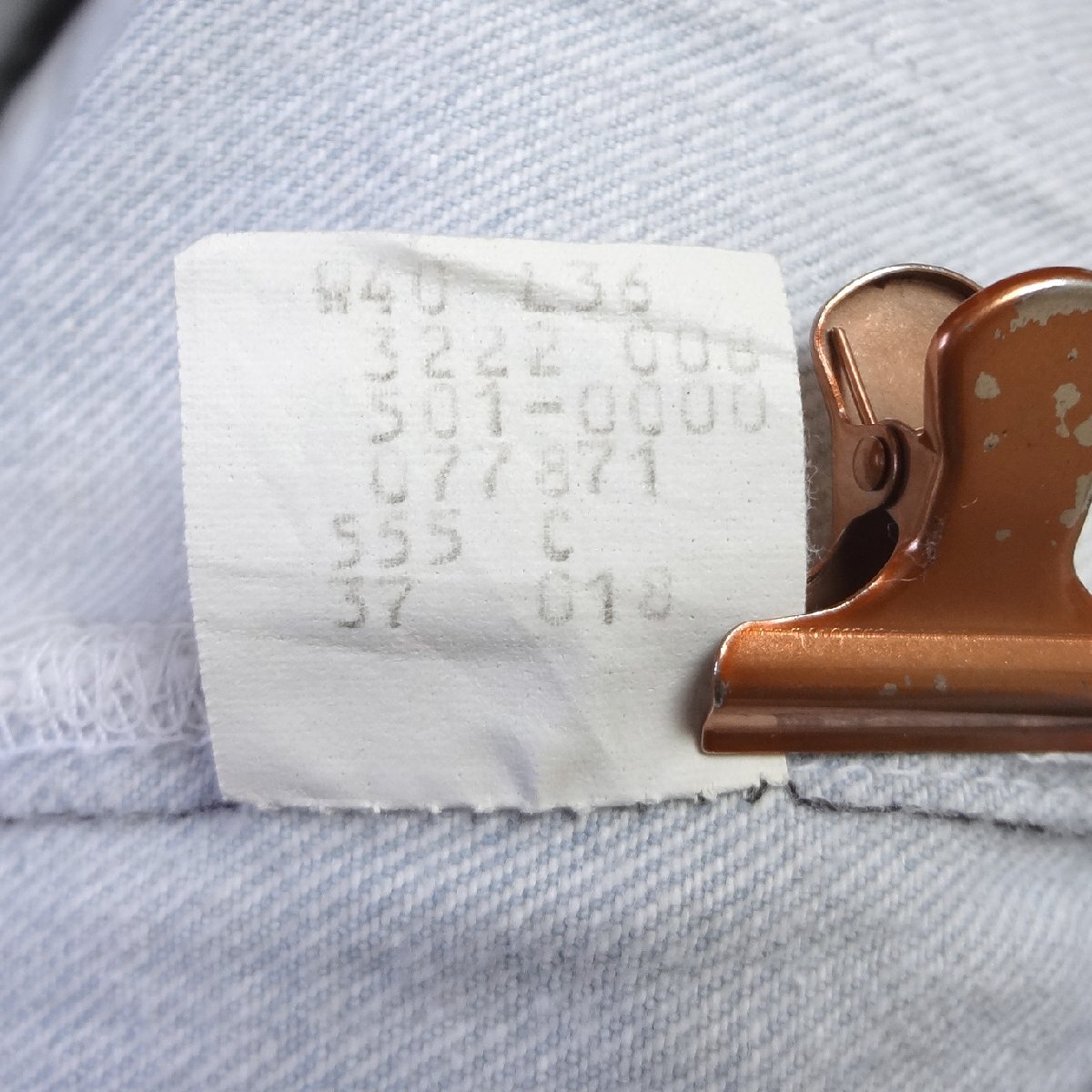 リーバイスの501米国製バレンシア工場製造トップボタン裏刻印555、USA製ジーンズ、Levi'sの501-0000アイスウォッシュ加工ジーパン