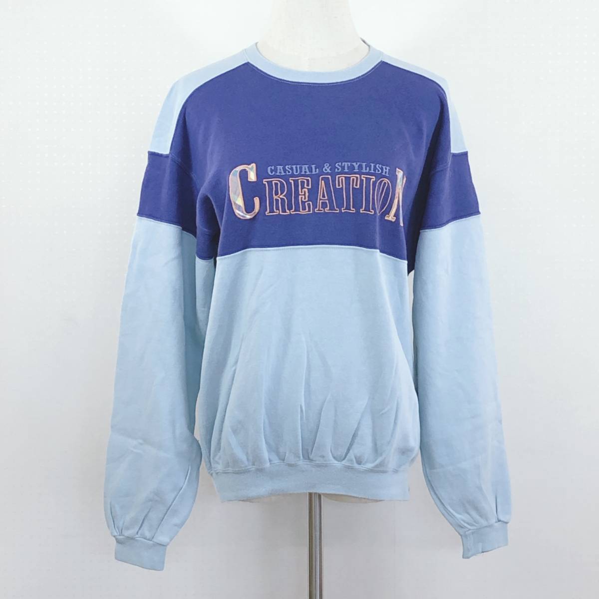 YAS0706 キッズ トップス トレーナー スウェット 長袖 サイズ160センチ ブルー青 水色 ロゴ刺繍 綿100% コットン カジュアル 部屋着 春秋冬