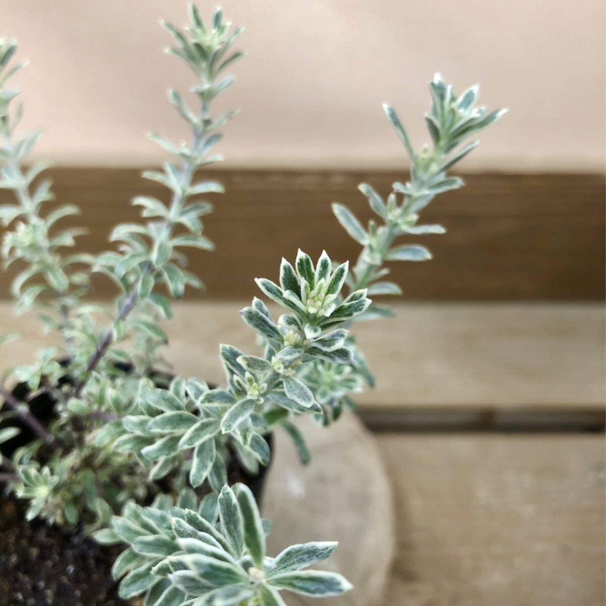 明るい緑の細葉で、外側にクリームの斑が入り、全体的にシルバーぽくなり、とても美しい低木です。