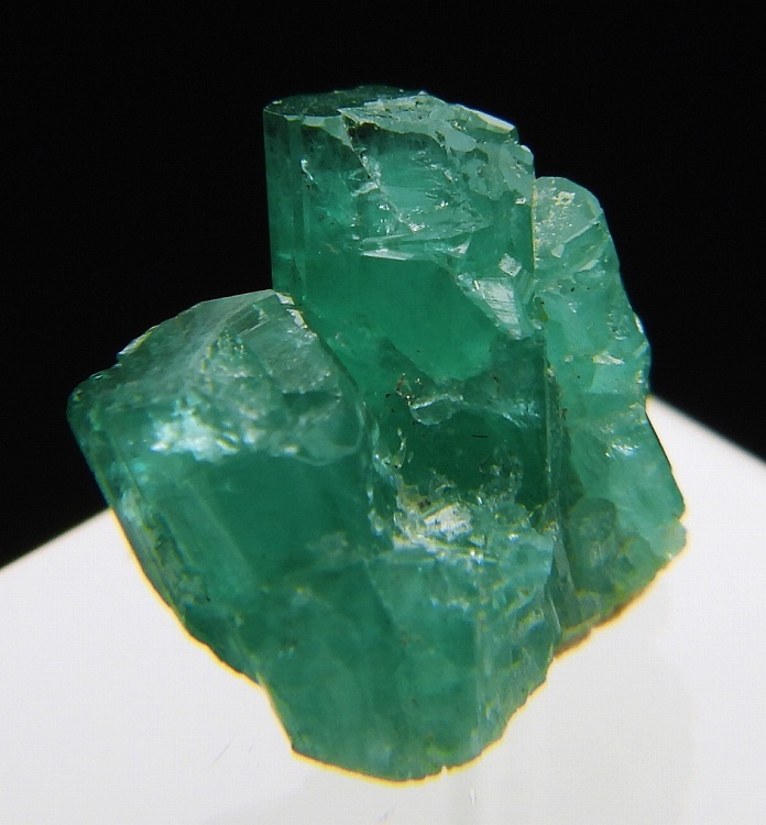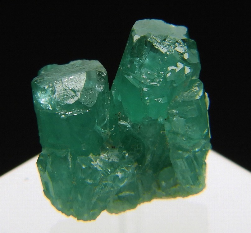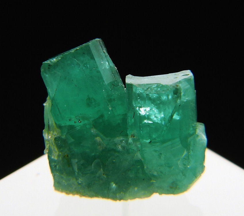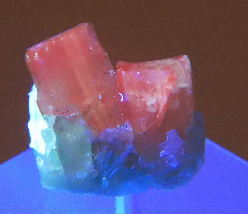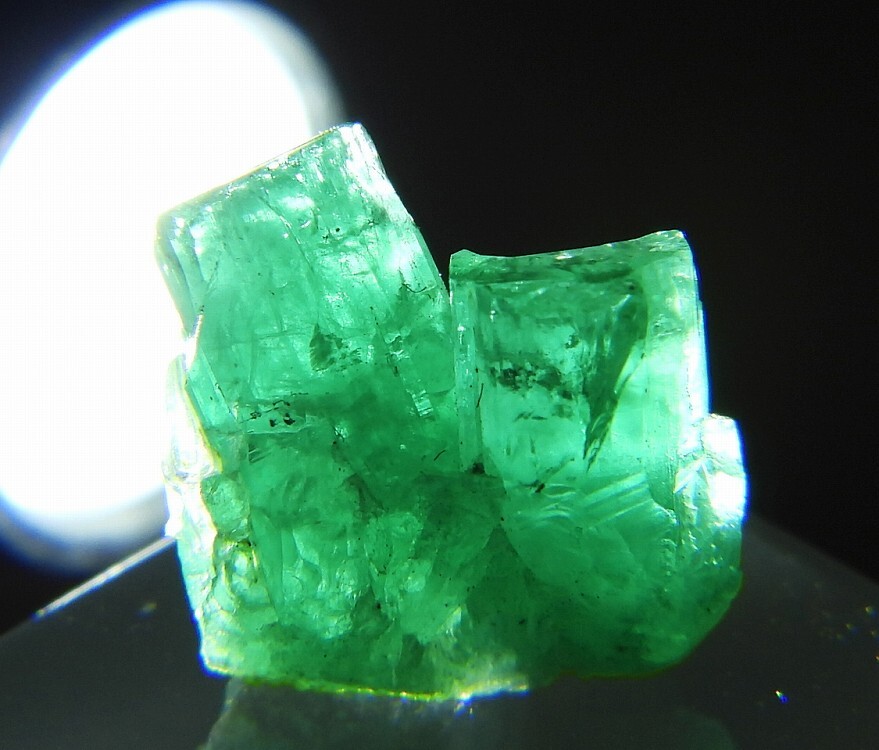 フラックス法で作製されたチャザム社製の人工エメラルド。紫外線長波で蛍光します。標本の市場流通はなくなりました。