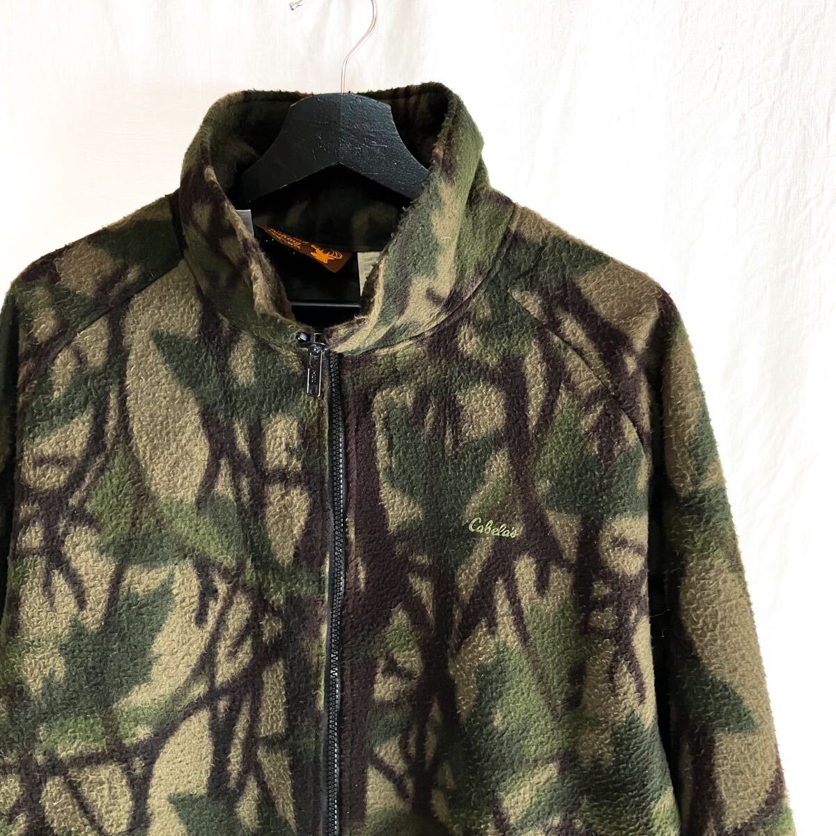 90s USA製 cabela's リーフ ツリー カモ フリース ジャケット ミリタリー 迷彩 XL