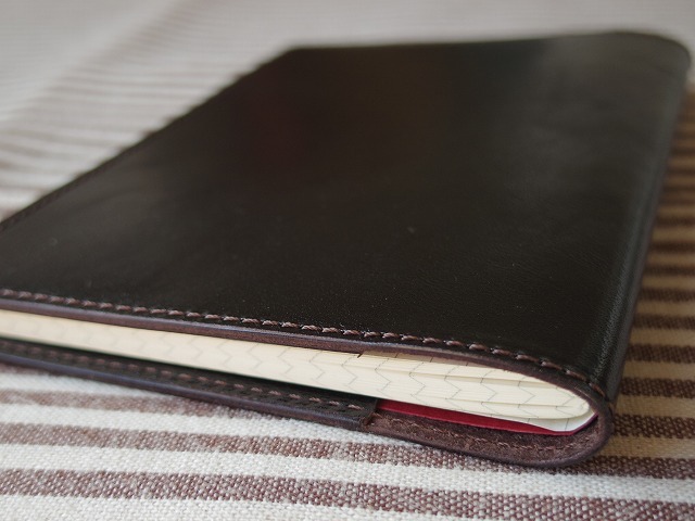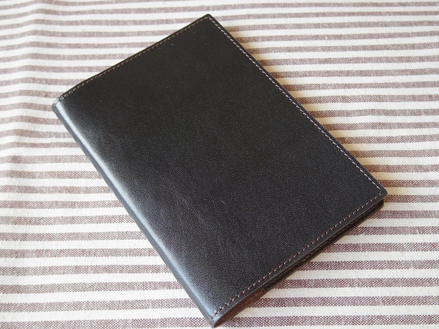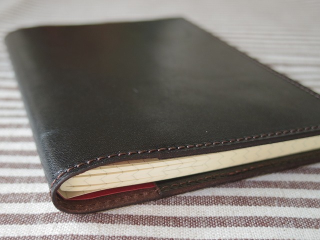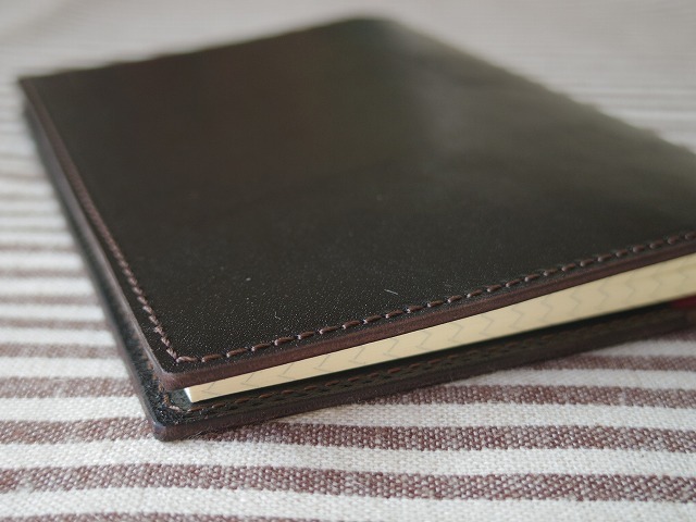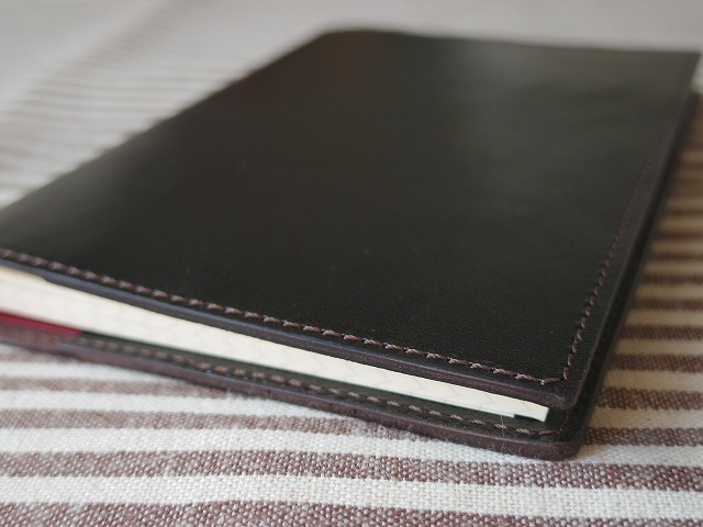 +++商品説明+++ 本革で作ったA6判ノートのカバーです。 ペンホルダーはあえてつけず、シンプルに作ってみました。 裏の見返しは若干深めにしているので、筆記する際に見返しの端の段差はあまり気にならないと思います。 サイズの参考にしたのはダイソーで販売している上質紙を使用した写真のノートです。このノートがかなりぴっちりとジャストサイズで入ります。 使用した革はタンニンなめしの馬革1.1mm厚。革ジャン用になめされた革です。オイルがしっかり入って、しなやかでしっとりとした手触りです。色は黒に近い焦げ茶です。 製作は以下の通り、時間をかけて丁寧に行っております。 ①床面の磨き タンニン鞣しの革ならではの工程です。 革の裏面にフノリを塗布し、専用のガラス板を用いて均一に磨きます。 これにより革の裏面が滑らかに仕上がります。 ②革の接着 革の接着面をヤスリで荒らし、ゴム糊を用いて接着します。 次工程のミシン掛けの際、ずれないようにするために必要な工程です。 ③ミシン掛け 皮革製品に用いる工業用ミシンを使用しています。 工業用ミシンにも色々ありますが、ステッチの締りが良いといわれる、半回転カマのミシンを使っています。 直線的ではなく、ミの字のステッチになる皮革用の針で縫っています。 糸は皮革用ミシン糸としてスタンダードなビニモを使用しています。光沢感のあるきれいな糸です。 ④ヘリ落とし 革のヘリは、そのままだと角が立っているため、サンドペーパーで角を落とします。 ⑤ヘリ磨き 床面と同じように、フノリを使って磨きます。 この工程もタンニン鞣しの革ならではの工程です。 この仕上げにより、持った時に手にやさしくなじむようになります。 念のため、お売りするものはカバー本体のみで、写真に写っているA6判ノートは付属しません。 【大きさ】広げた状態で幅233mm、高さ156mm、見返しは80mm +++発送について+++ 発送は千葉県柏市より、ゆうパケット(230円)予定しています。ご希望により定形外郵便(270円)やレターパックライト(430円)等での発送も承ります。 +++他の出品作品について+++ 他にも幾つか製作・出品しているものがあります。下記からご確認ください。 ■■出品作品一覧■■ +++ブログについて+++ 革もの製作のブログがあります。 ブログ hou-bou Leather X(旧Twitter) 方々亭 出品作品以外にも色々と作っています。気になったものがありましたらブログやXよりお問い合わせ下さい。 |