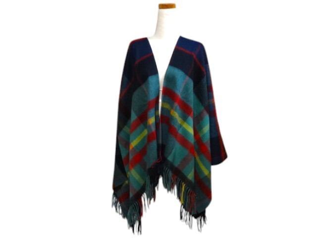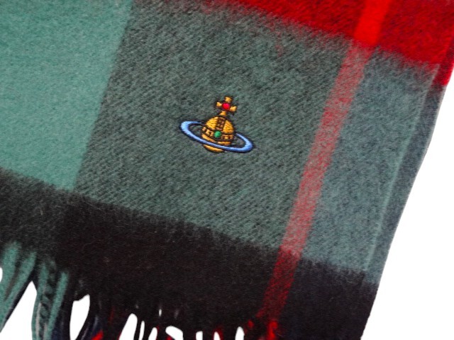 新品未使用 正規品 ヴィヴィアンウエストウッド Vivienne Westwood ポンチョ ストール ブランケット 刺繍 毛100% チェック柄 グリーン