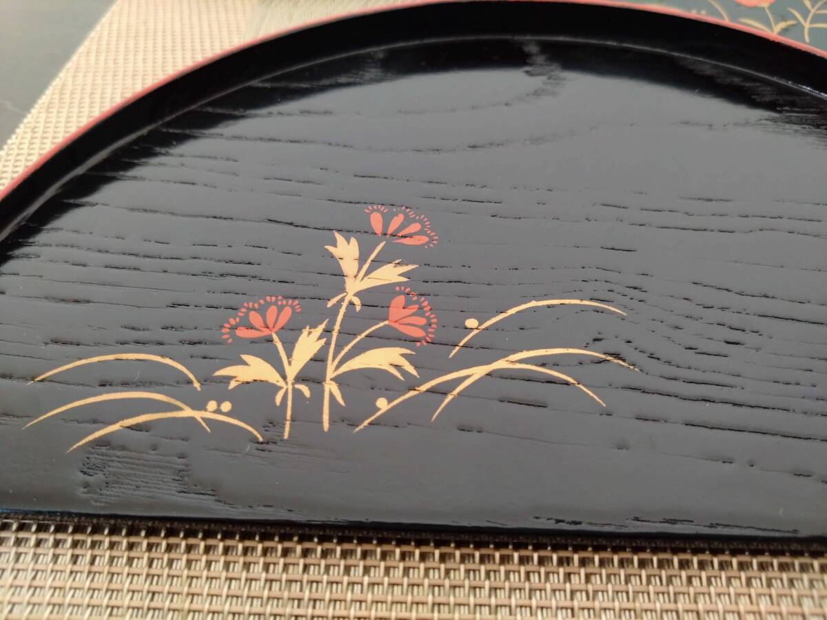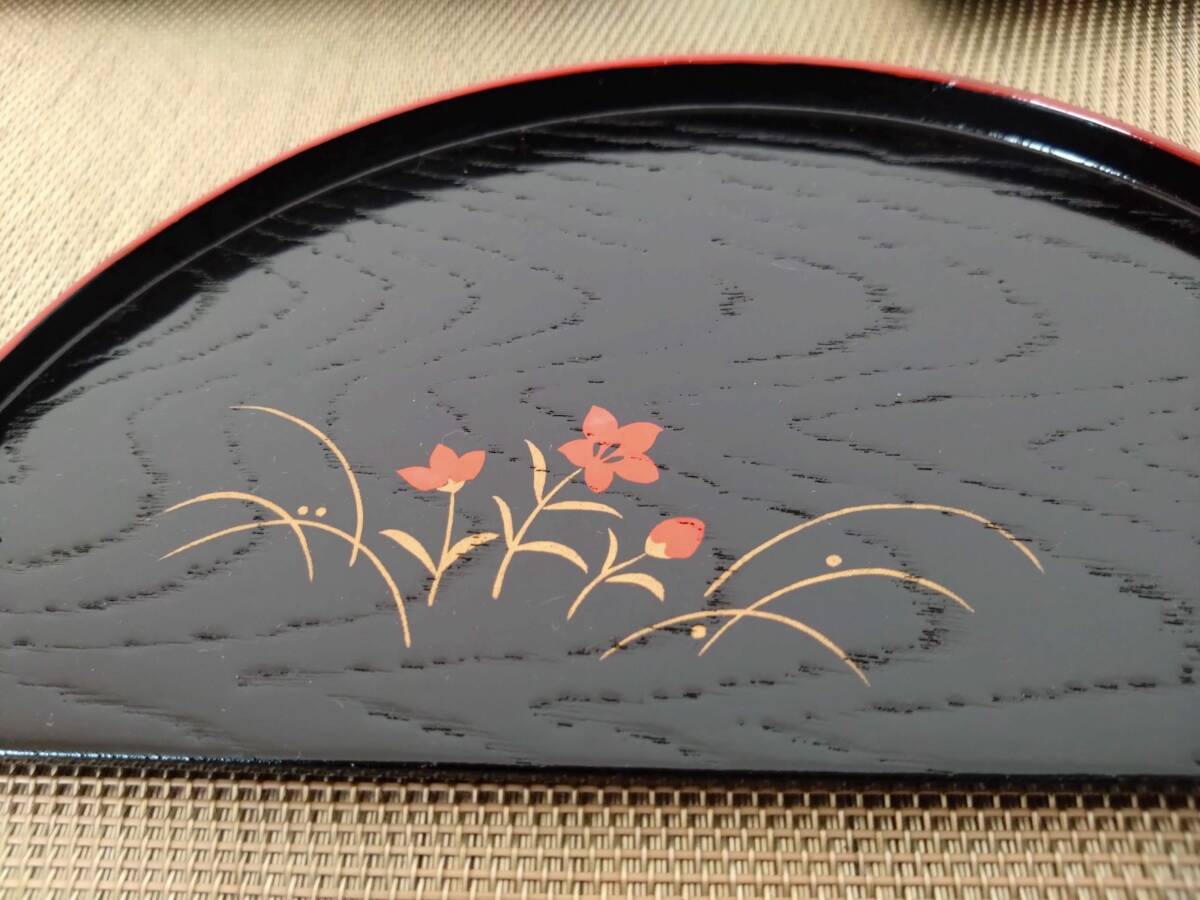 半月盆 漆塗り 蒔絵 草花文 5客セット
