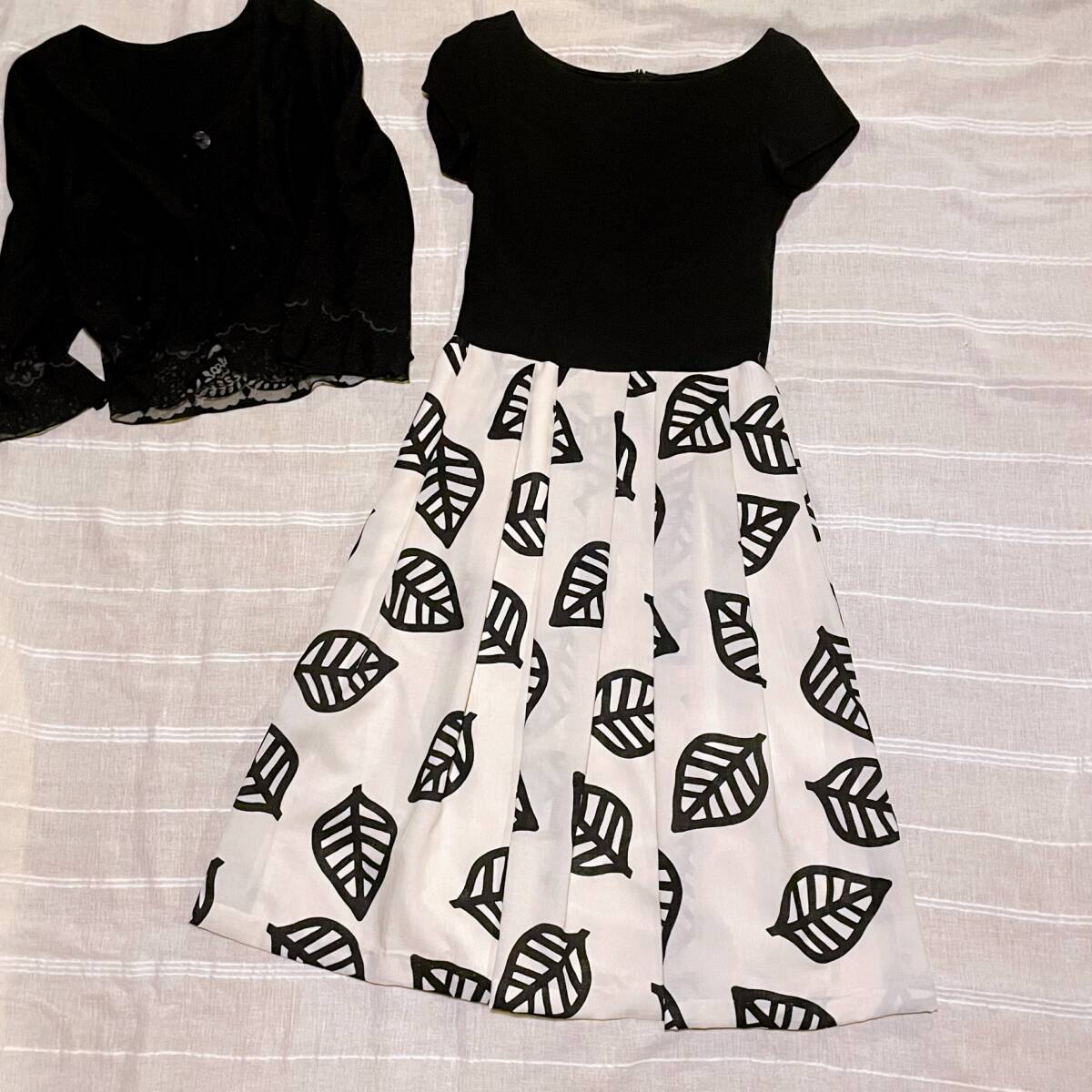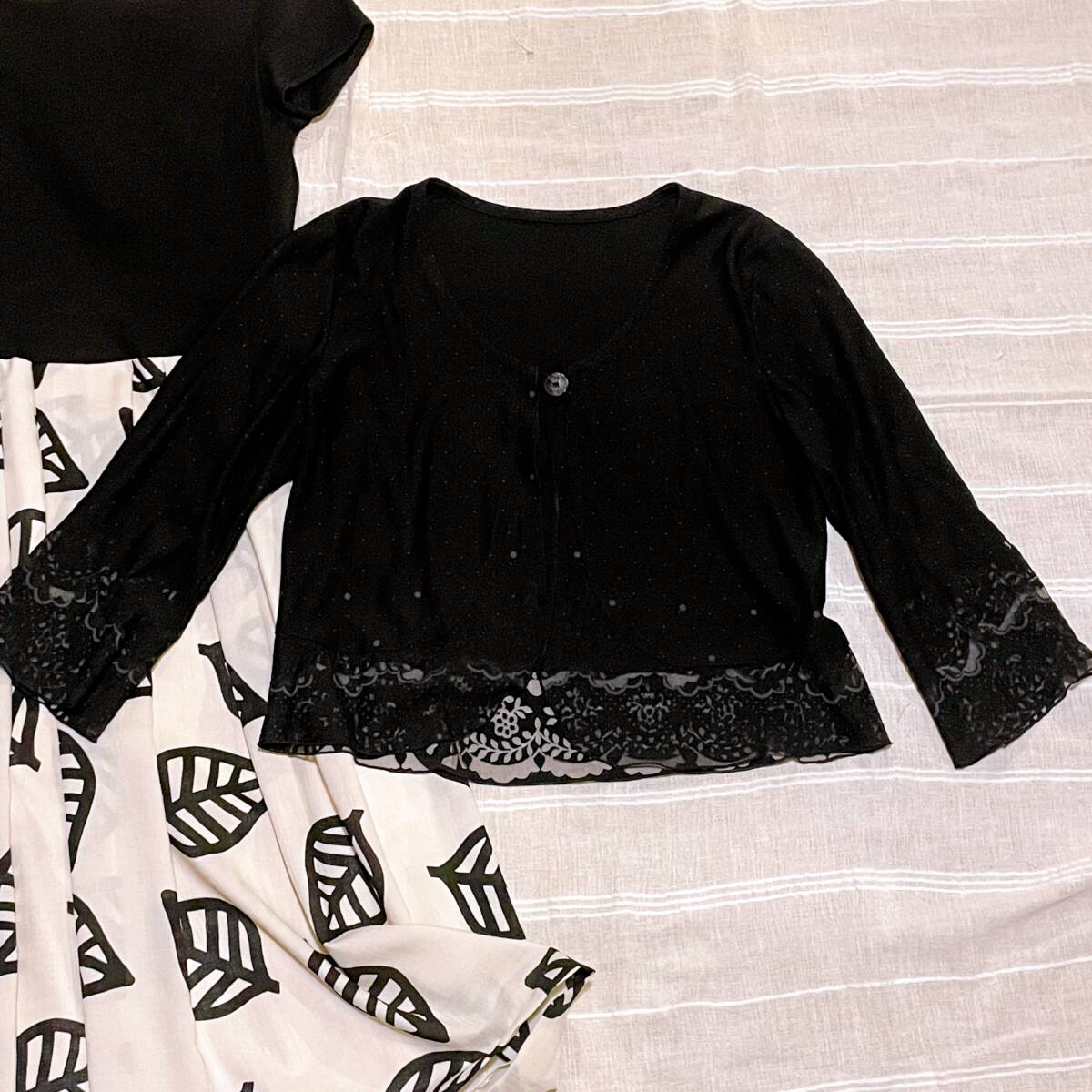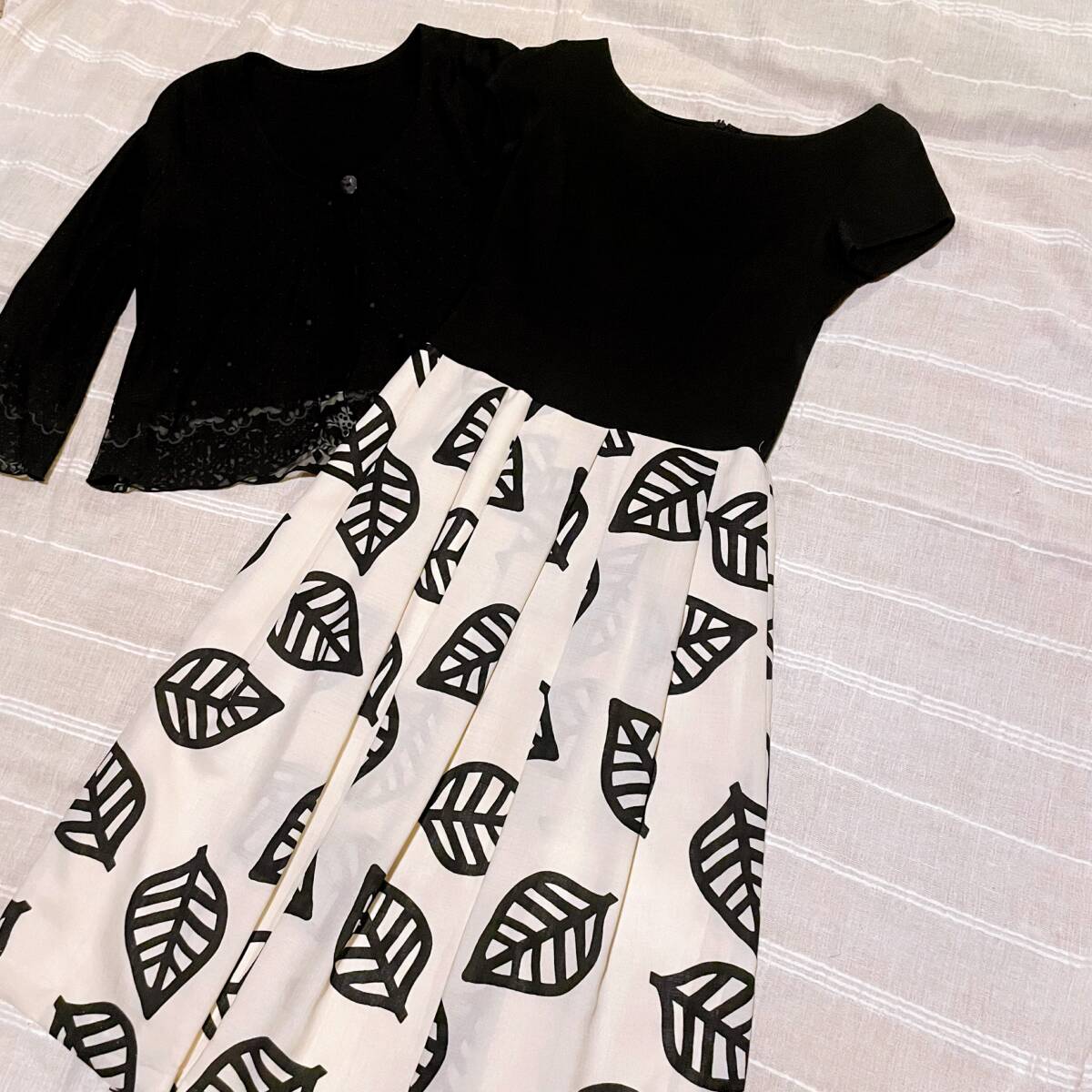 advance 葉っぱ柄 ワンピース Entourage ボレロ 2点セット!コットン 綿 レーヨン 黒 フォーマル ドレス 結婚式 パーティー 二次会 9号
