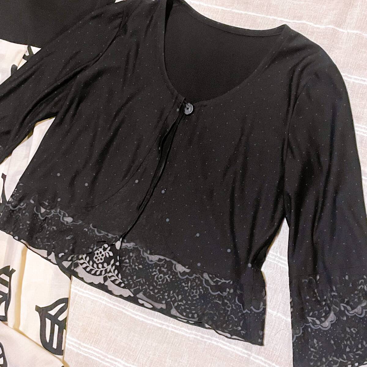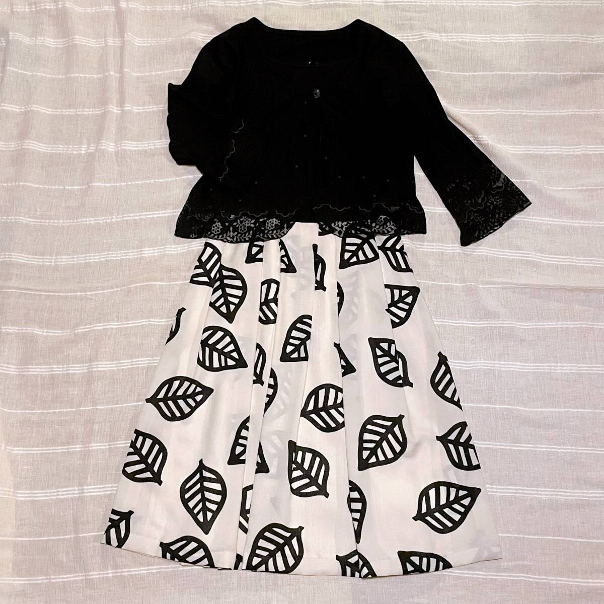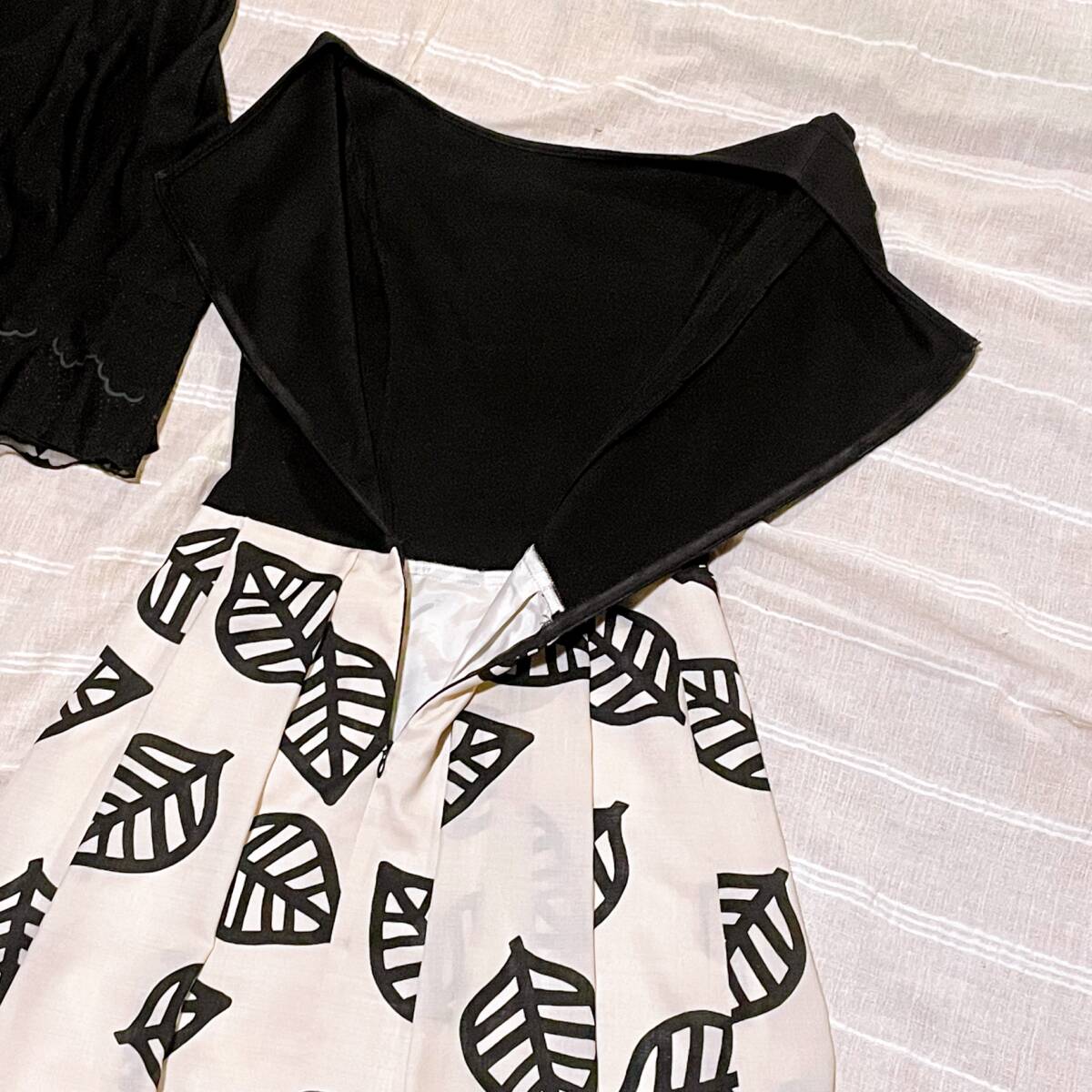 advance 葉っぱ柄 ワンピース Entourage ボレロ 2点セット!コットン 綿 レーヨン 黒 フォーマル ドレス 結婚式 パーティー 二次会 9号