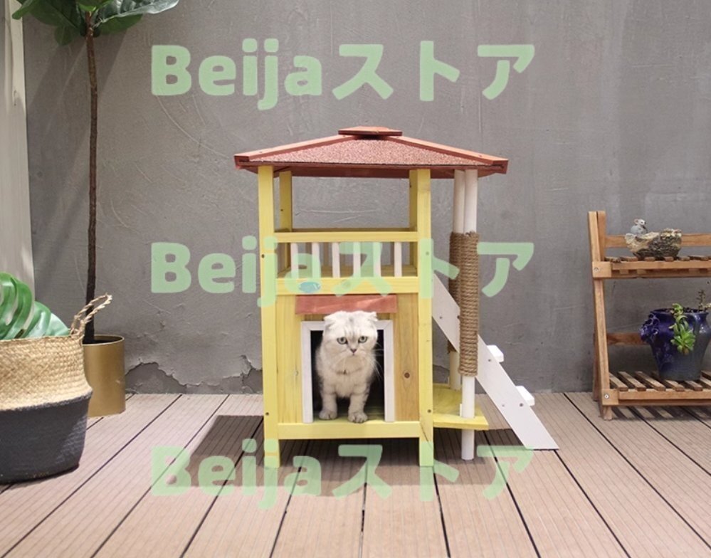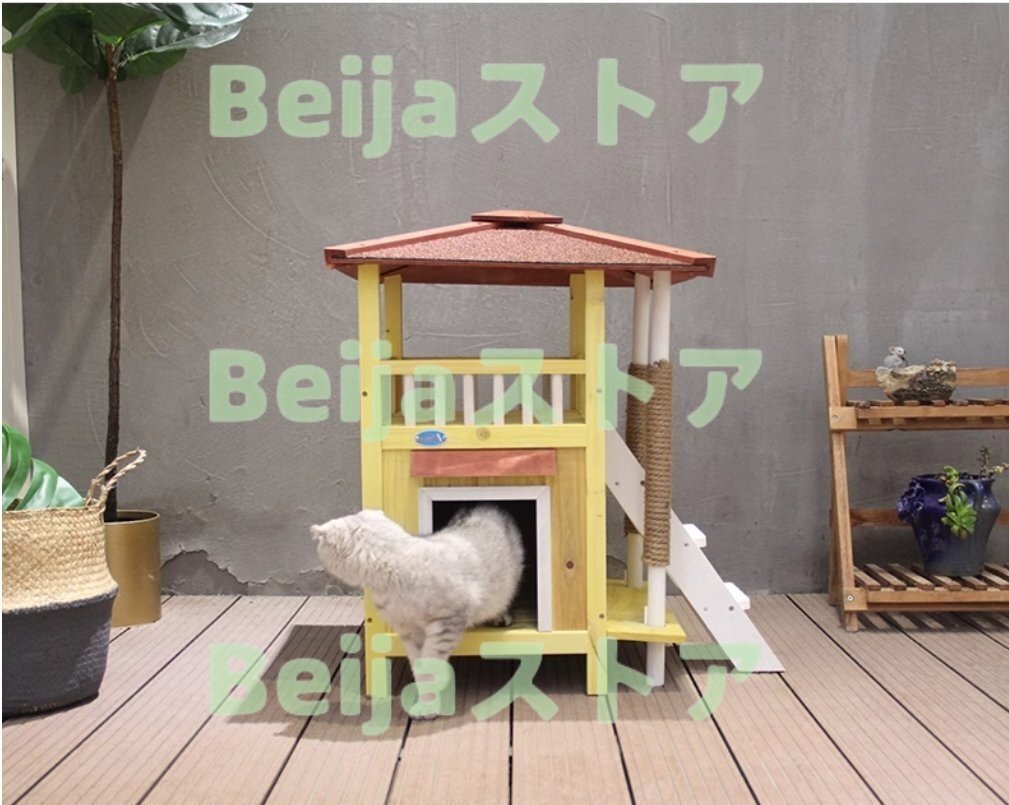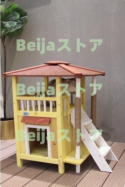 極美品★高品質 猫部屋 猫用豪華別荘 ソリッドウッド製 猫舎 キャットタワー 室外猫ハウス 二段ケージ 環境に優しいデザイン