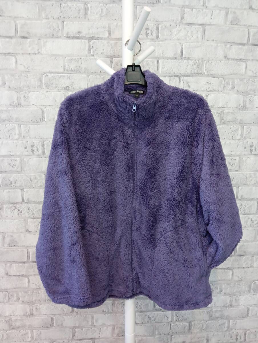 LL 新品 ふわふわファーフリース フリースジャケット ブルゾン  パープル