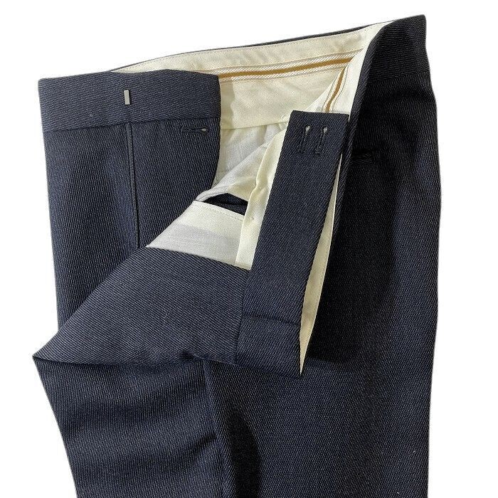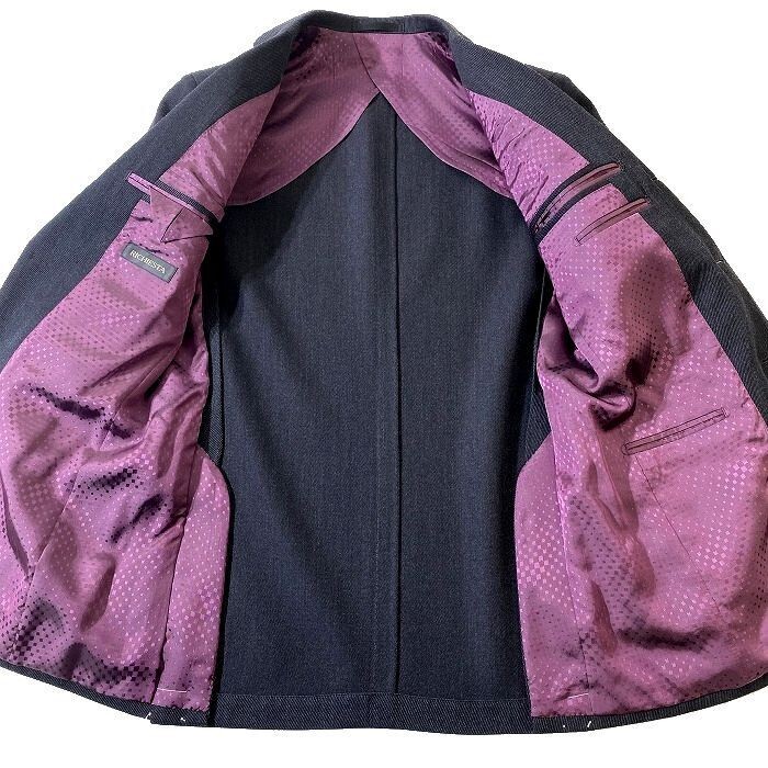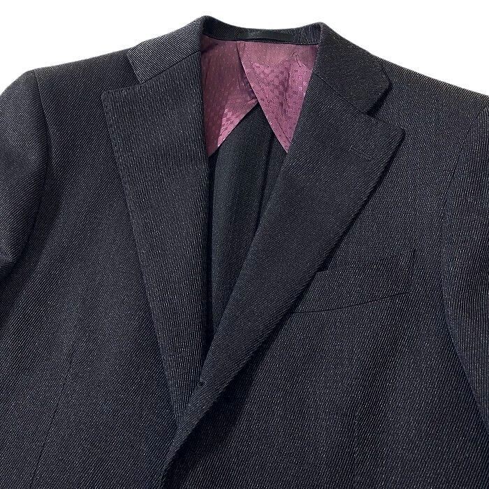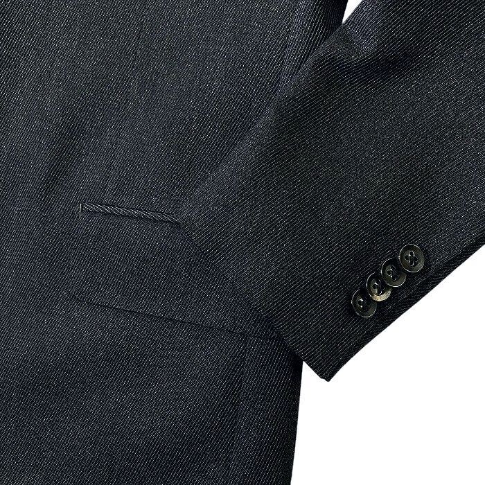 ジャケット:2Bシングル・背抜き・サイドベンツ・仮切羽・内ポケット×4・外ポケット×3 パンツ:ジップフライ・ワンタック・裾未処理・4ポケット・ウエスト2.5cm出し可能 |