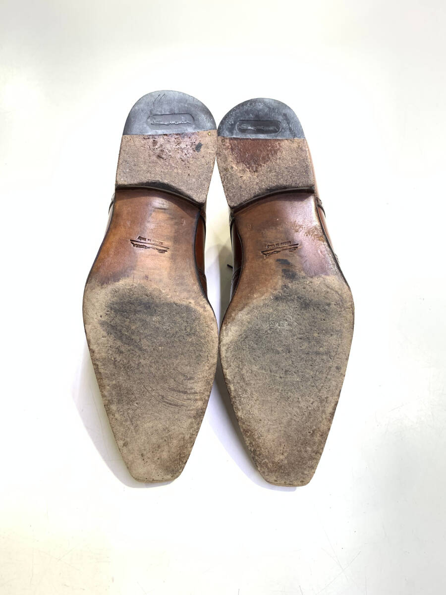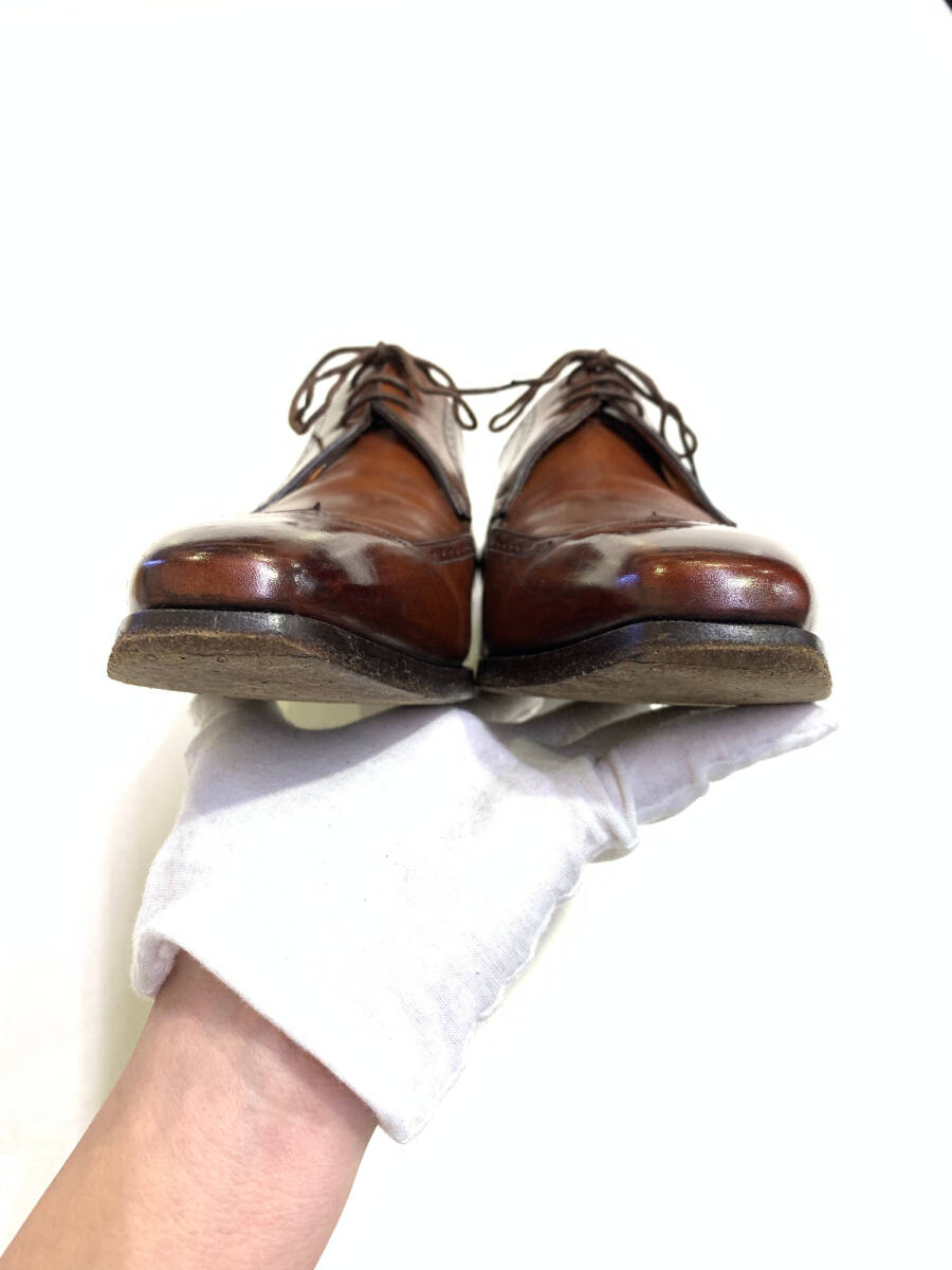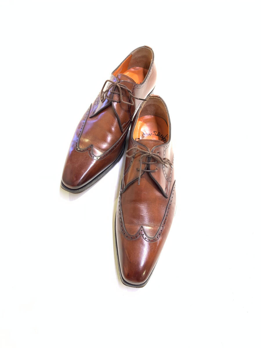 SANTONI 7646 サイズ6(24.5cm程度) 外羽根 ロングノーズ WINGTIP LEATHER SHOES BROWN シューキーパー付