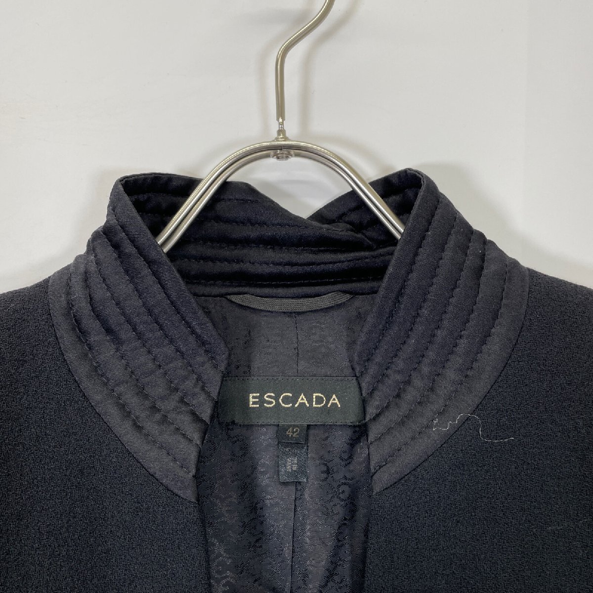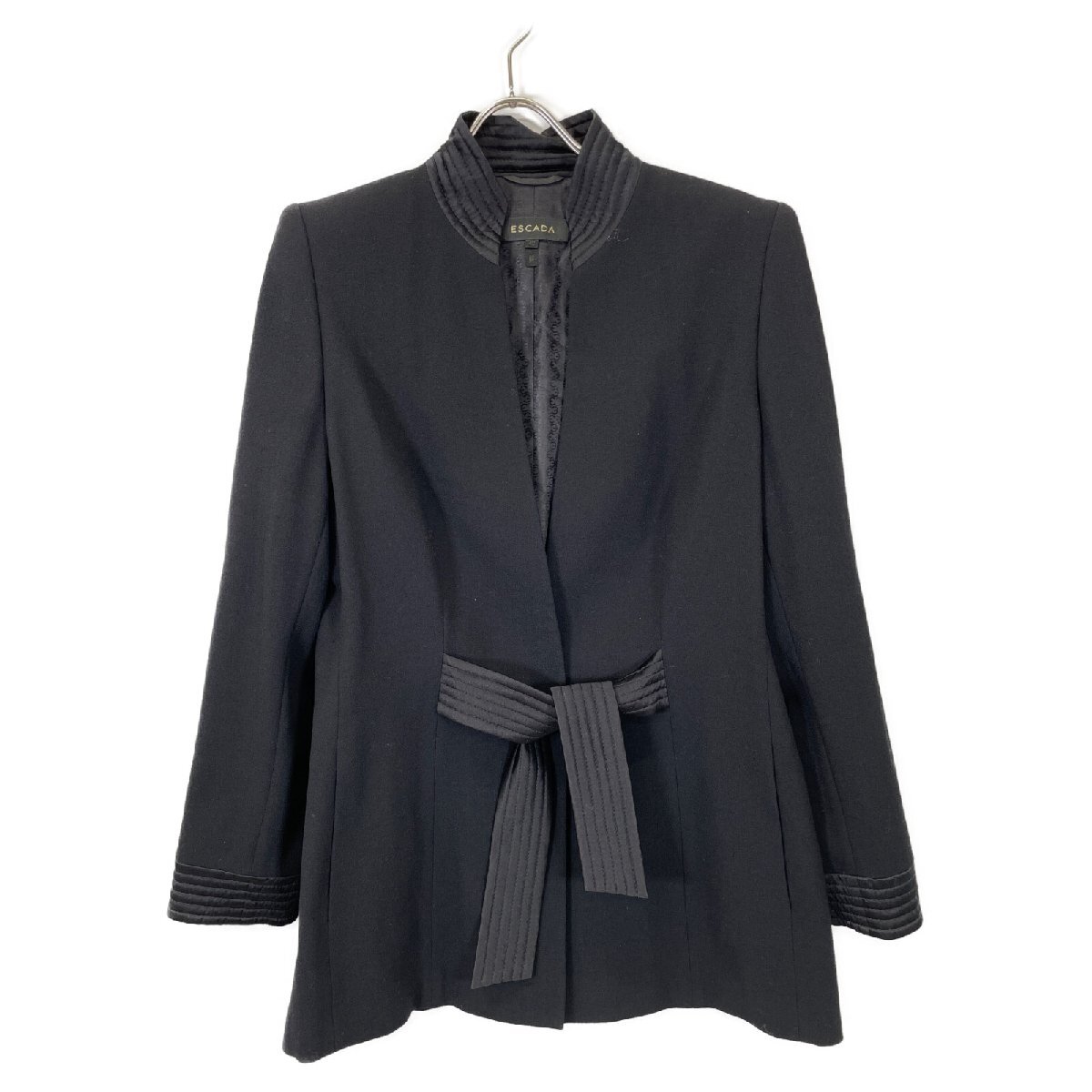 ESCADA エスカーダ ブラック ベルト付き スタンドカラー コート ブラック 42 コート ウール レディース 中古