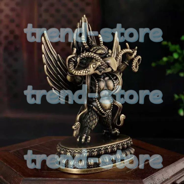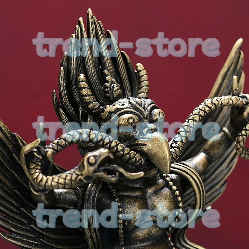 仏像 ミニ 迦楼羅王像 13cm 真鍮製 守護神 風水 置物 ミニチュア仏像 (古色)