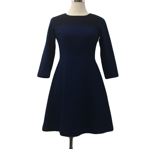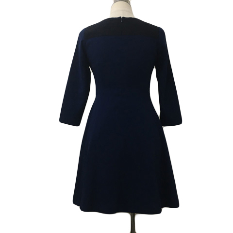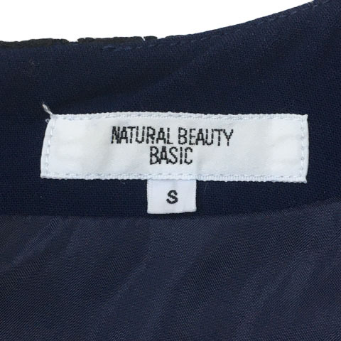ナチュラルビューティーベーシック ワンピース フレア ミニ レース 無地 長袖 S 紺 黒 ネイビー ブラック レディース