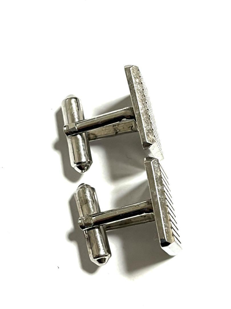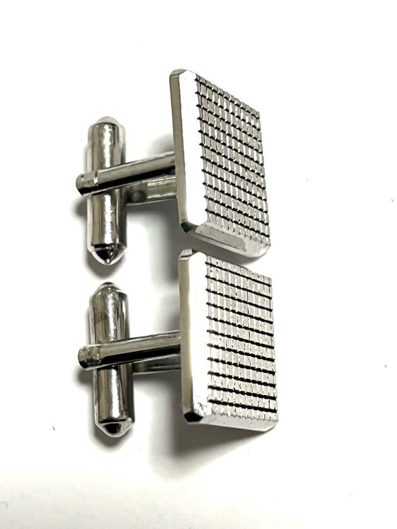 格子状のパターンが特徴的なシルバーのカフリンクス。